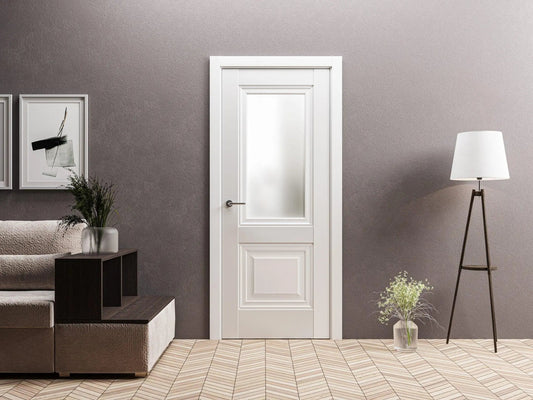 Ușă interior Astrid White Silk Mat – cu sticlă mat-complet echipată și toc reglabil