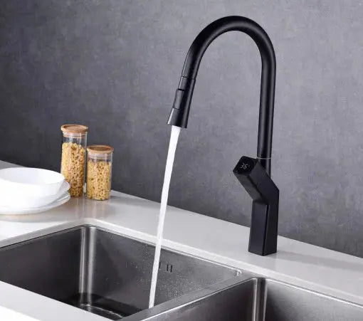 Baterie de bucatarie Clever SMK5017 , design modern, cu afisaj temperatura, crom