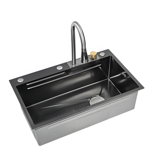 Chiuvetă Bucătărie Multifuncțională 7546HMSF – Gri Gun Metal, Cu Tocător, Dozator și Afișaj Digital