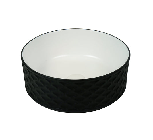 Lavoar rotund ceramic 787-CBKW-MRS – exterior negru texturat, interior alb lucios