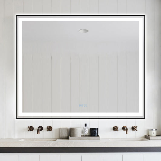 Oglindă LED H-1110 cu ramă aluminiu negru și funcție anti-aburire