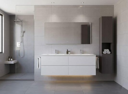 Oglindă LED H-3055 cu Ramă Aluminiu Alb, 3 Nuanțe de Lumină, Funcție Anti-Aburire și Comutator Tactil