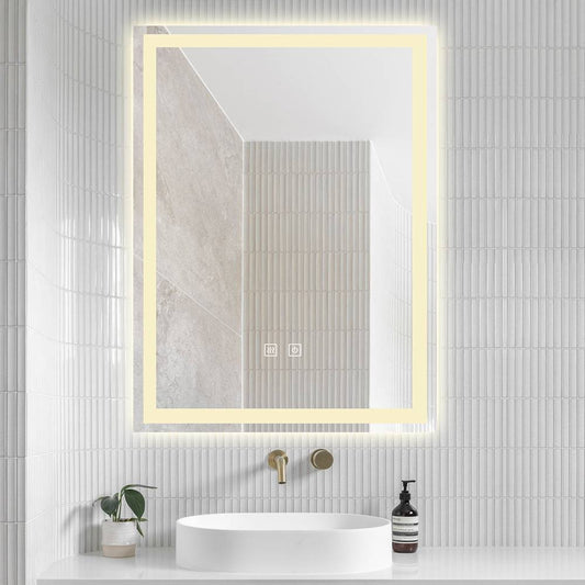 Oglindă Baie LED H-3075 cu 3 Nuante de Lumină, Dezaburire și Comutator Tactil – Design Modern