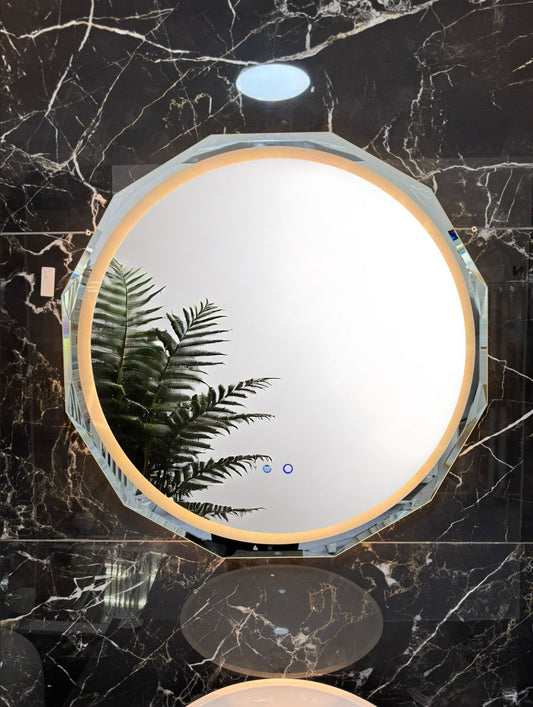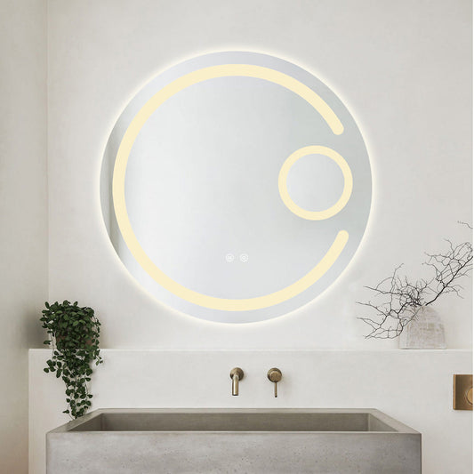 Oglindă rotundă LED H-2086 cu design artistic, 3 nuanțe de lumină, anti-aburire și touch control