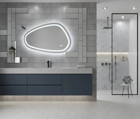 Oglindă baie LED H18 asimetrică cu 3 lumini, anti-aburire și touch control