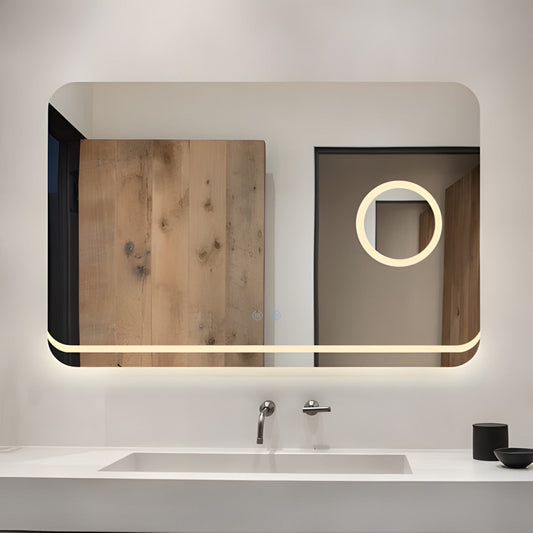 Oglindă Baie LED H-1083 Dreptunghiulară cu Lupă Cosmetică, 3 Funcții de Lumină, Anti-Aburire și Comutator Tactil