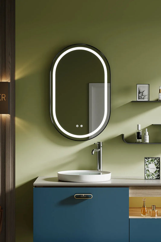 Oglindă LED H-3055 Negru cu bandă COB | 3 nuanțe de lumină & anti-aburire
