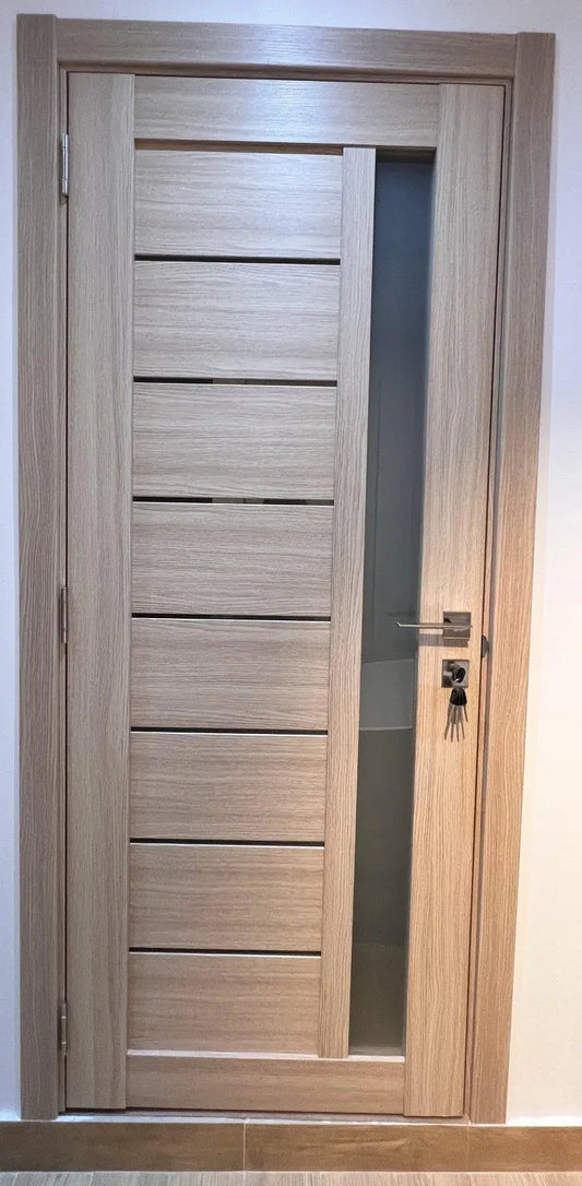 Ușă interior Lego 05 Eugene Oak – cu decor vertical, complet echipată și toc reglabil