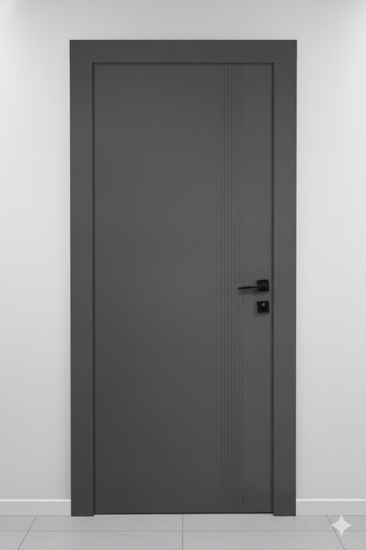 Ușă interior antracit JYA-006 cu toc reglabil – design vertical modern, complet echipată