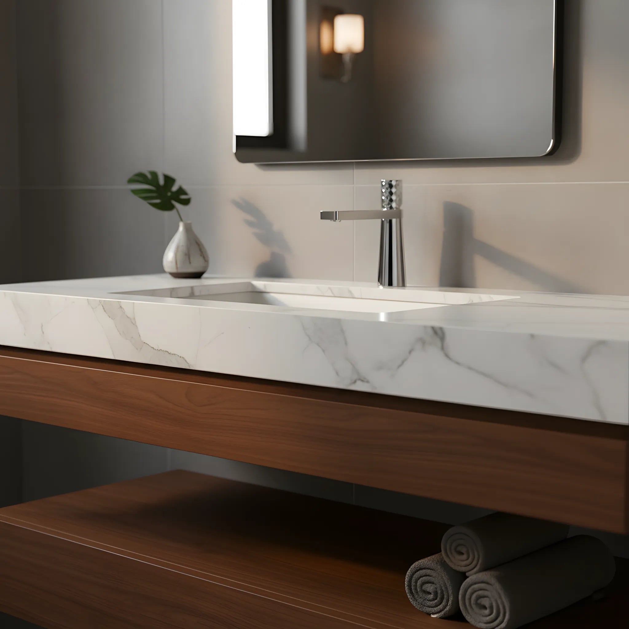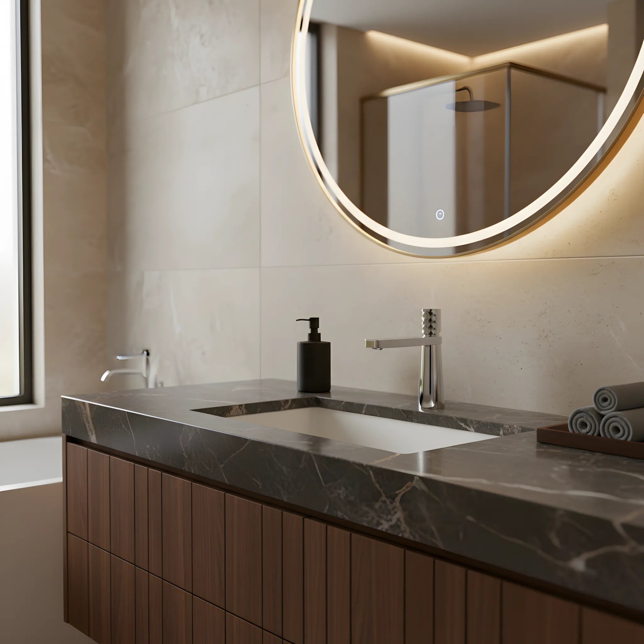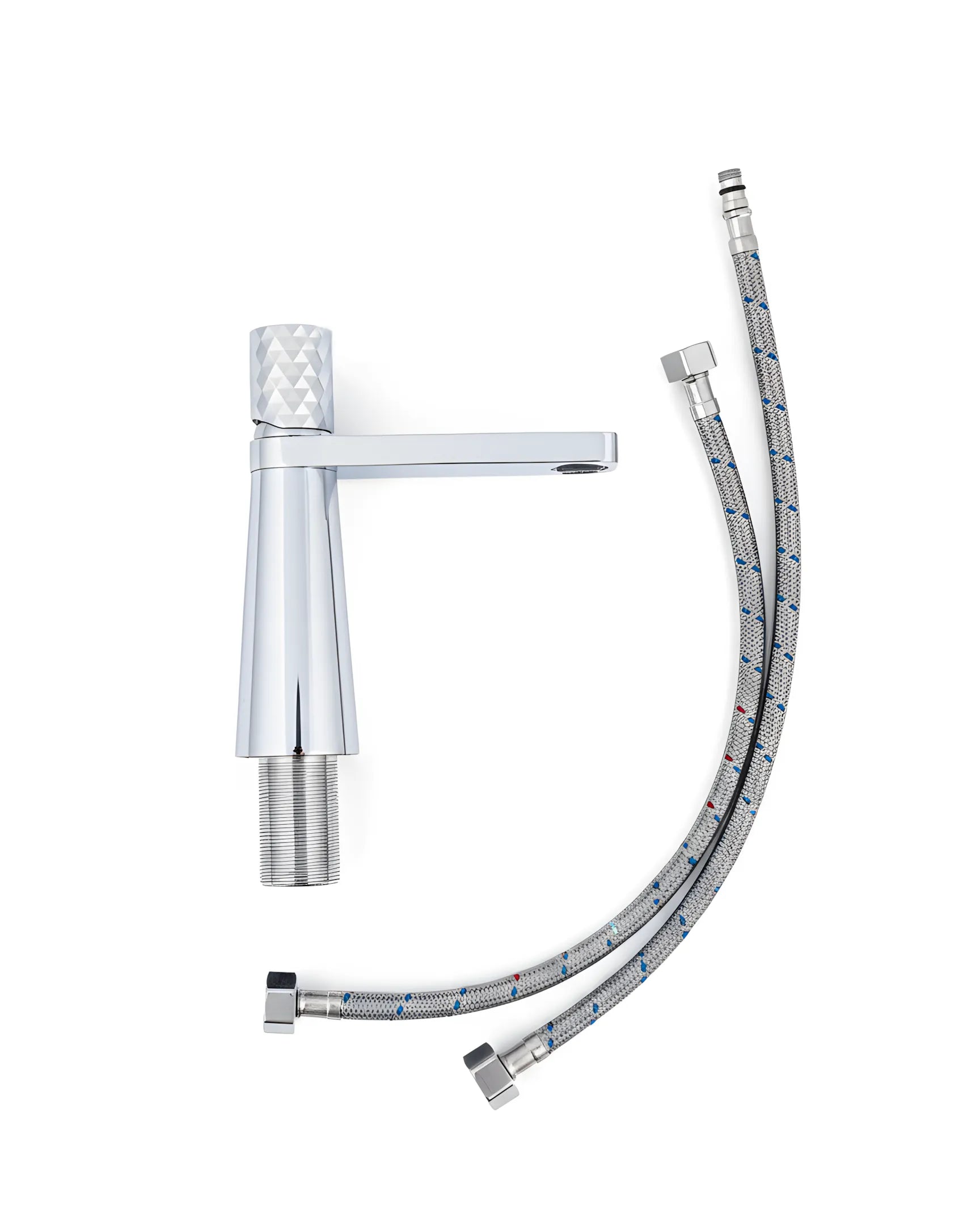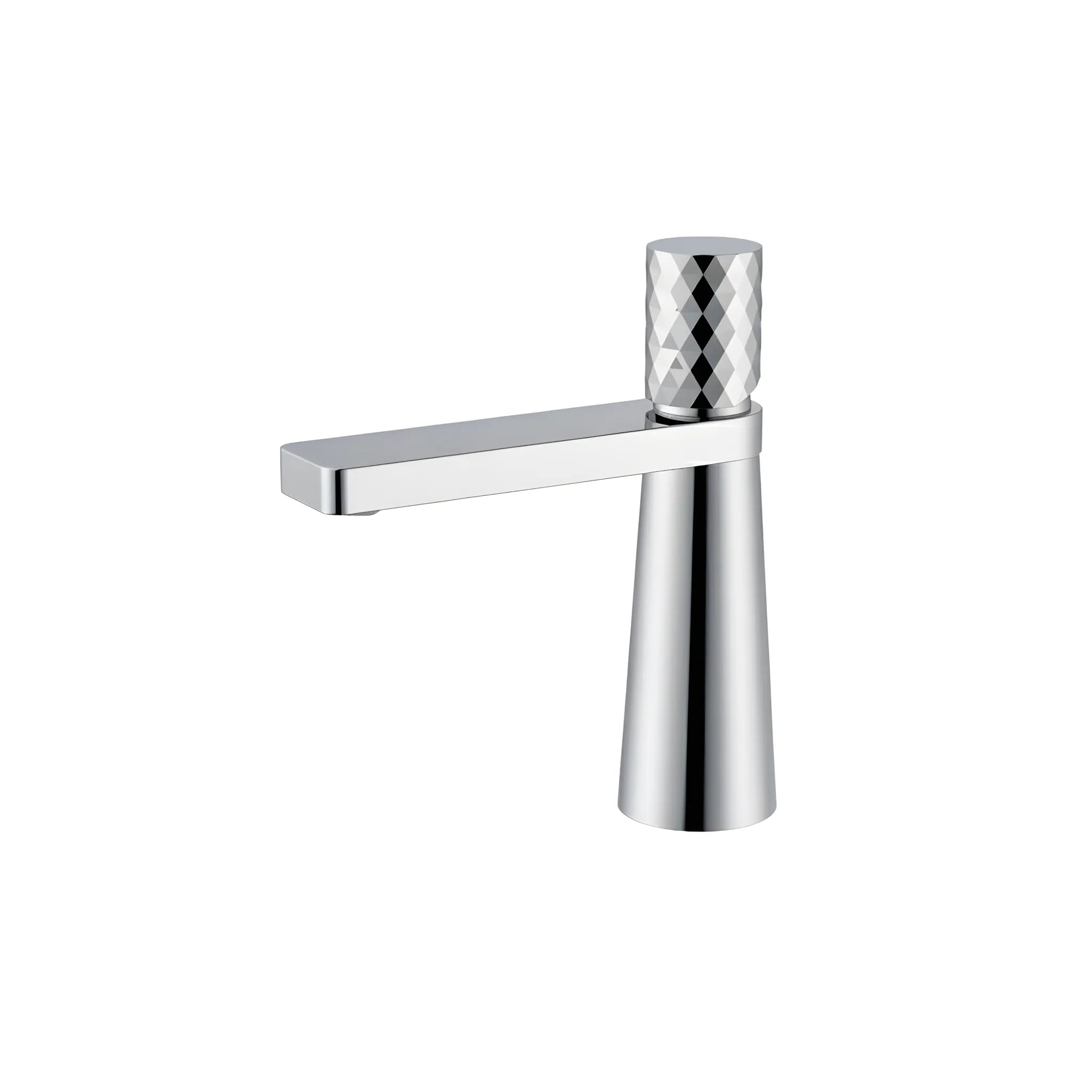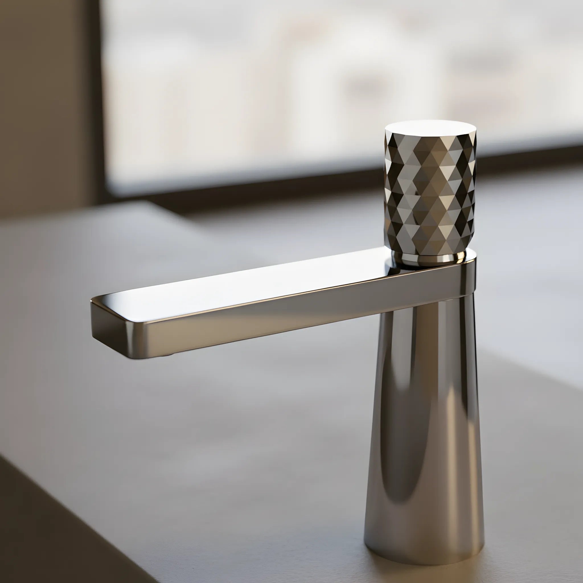 Baterie lavoar crom lucios cu textură fațetată – design contemporan din alamă solidă