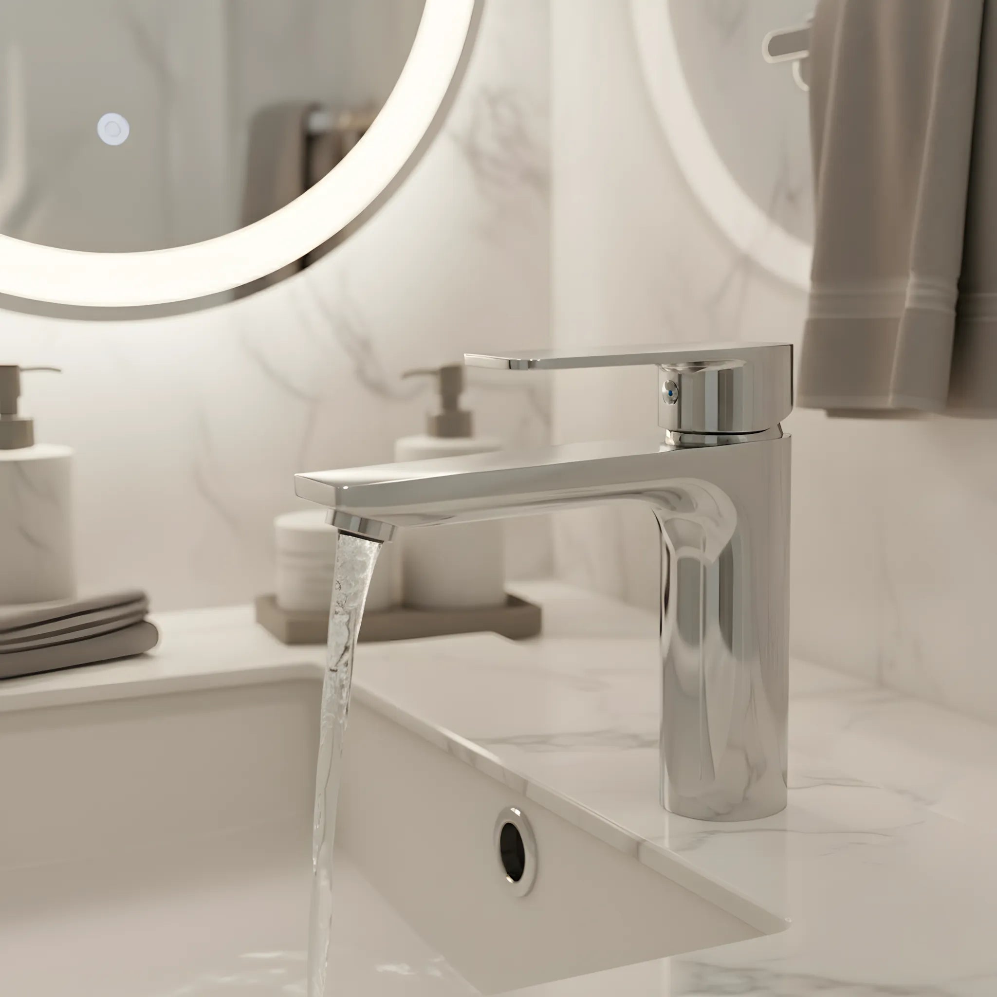 Baterie lavoar modernă Crom Lucios – design contemporan cu linii curate, alamă solidă