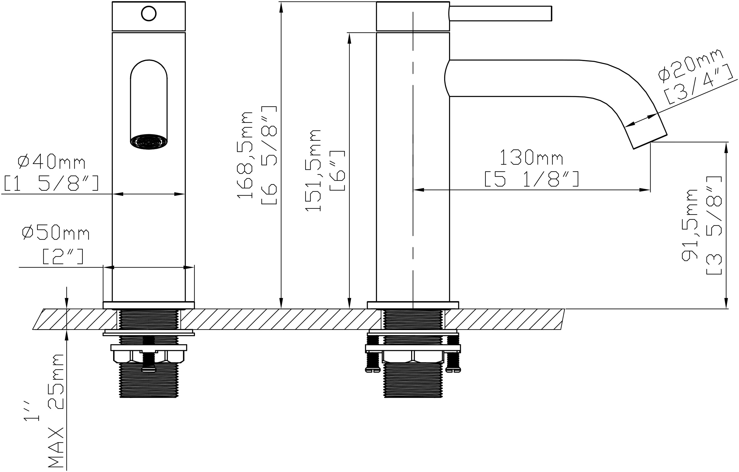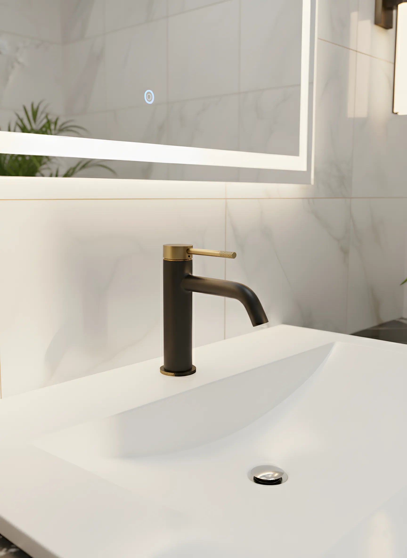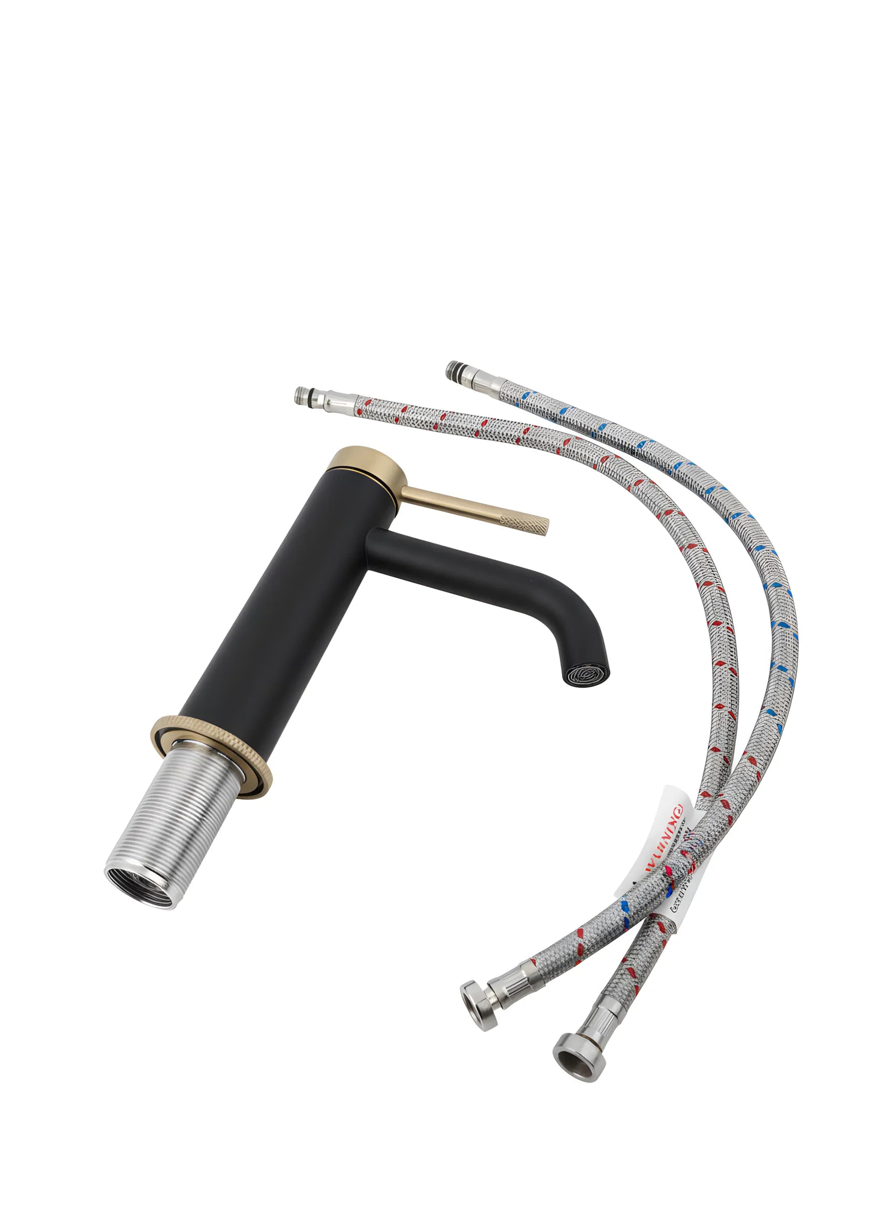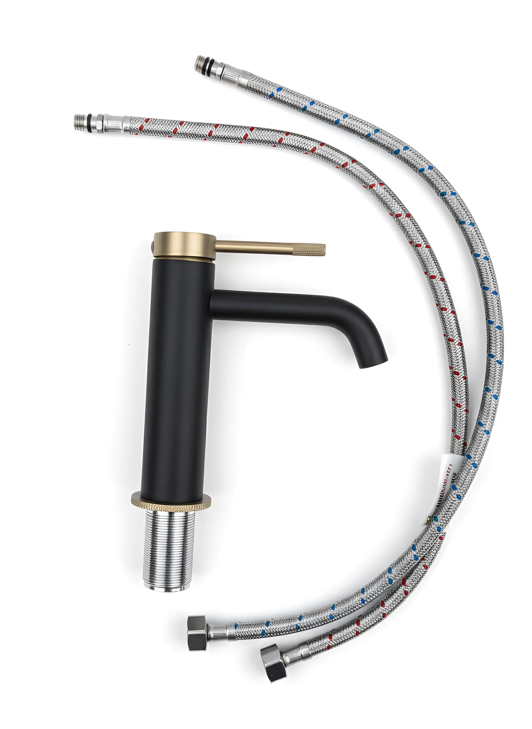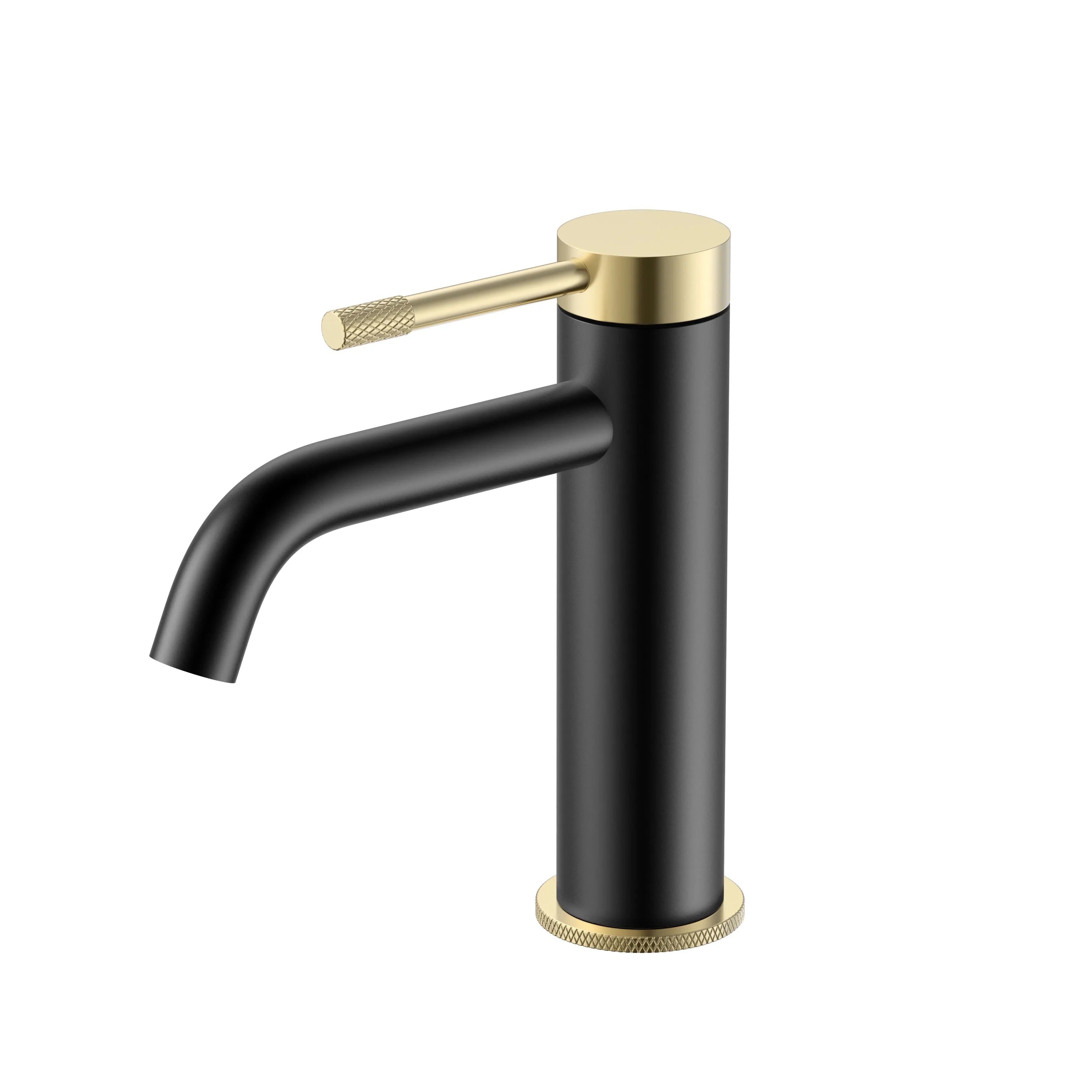 Baterie lavoar cu mâner și bază zimțate – negru mat si auriu periat
