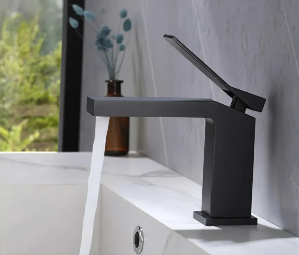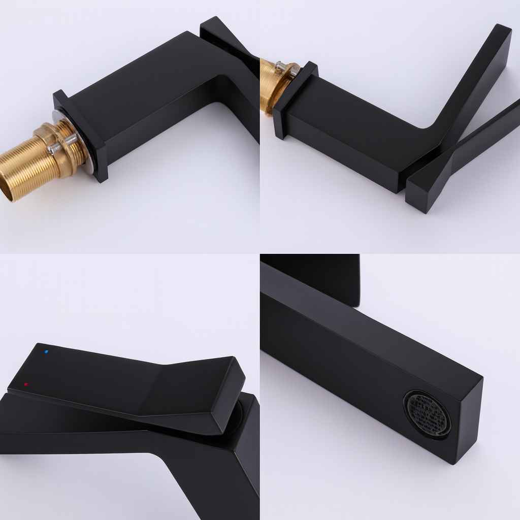 Baterie lavoar geometrica inox premium, finisaj negru mat