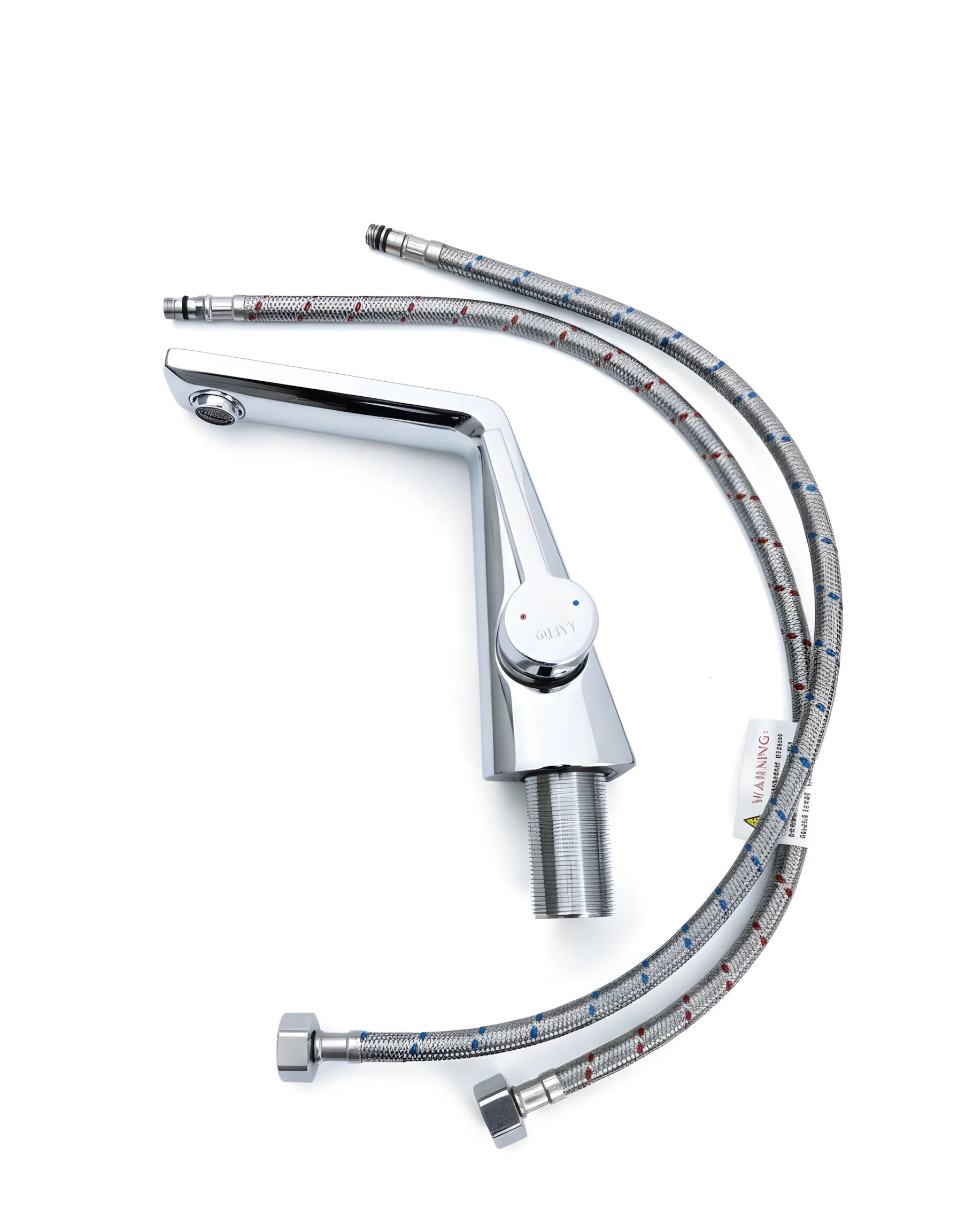 Construită integral din alamă solidă, bateria Nero garantează durabilitate ridicată și rezistență în timp. Cartușul ceramic asigură o acționare lină și precisă, iar aeratorul Neoperl oferă un jet uniform, silențios și economic, optimizând consumul de apă fără a afecta confortul.