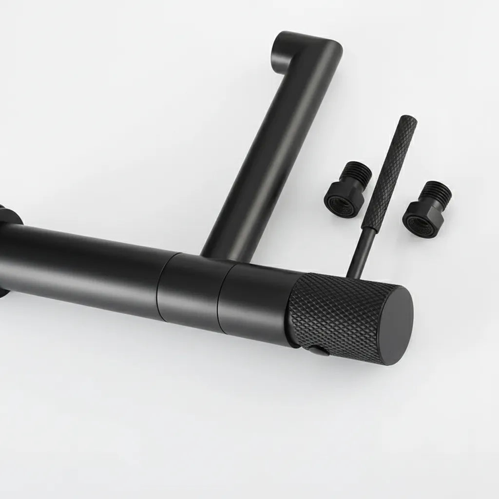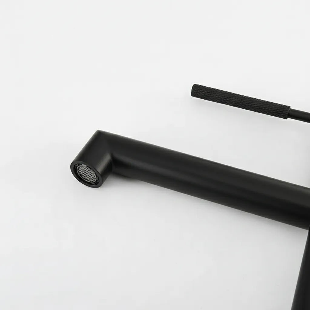 Mânerul ergonomic oferă control intuitiv, iar gura de scurgere rotativă la 90° aduce flexibilitate maximă în utilizarea zilnică. Finisajul negru mat este ușor de întreținut și rezistent la zgârieturi și pete de apă, păstrând aspectul premium în timp.
