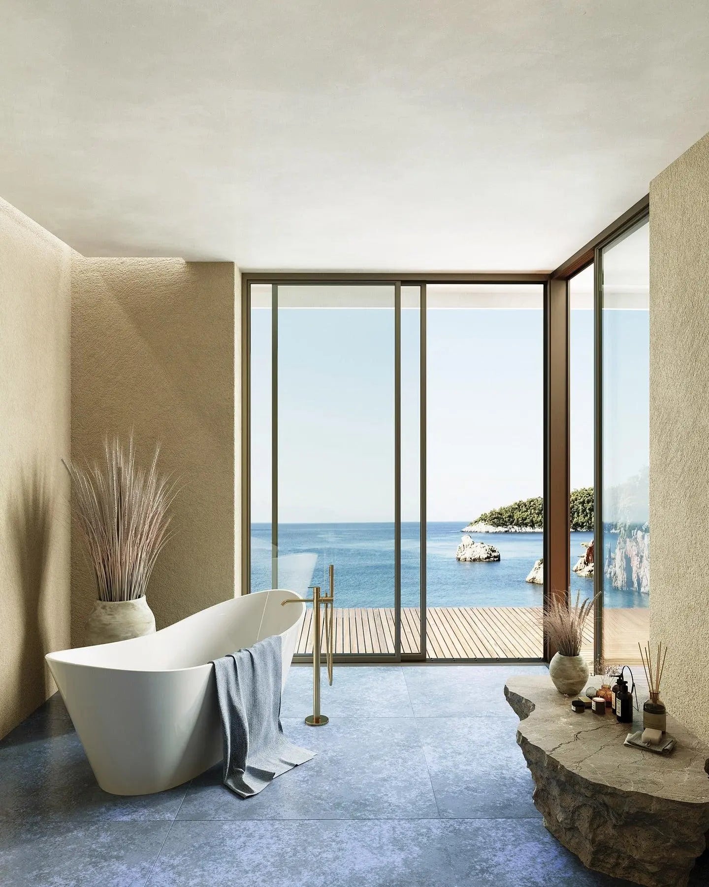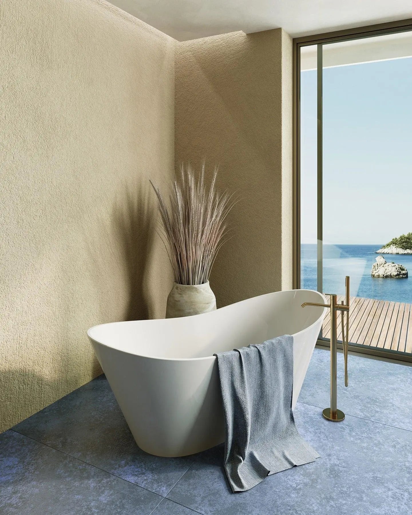 Cada Florida free-standing cu finisaj alb mat obtinut prin slefuire.