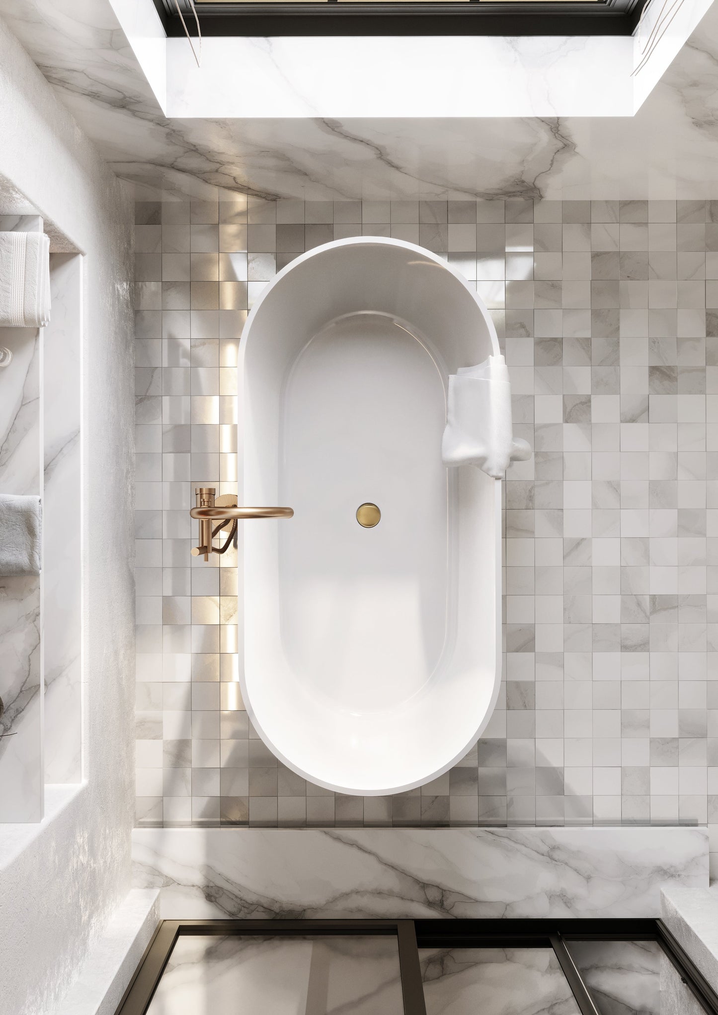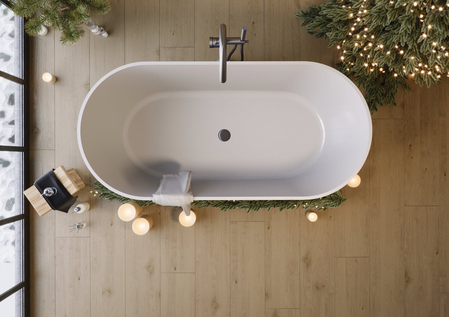 Cadă Greenland free-standing din compozit alb lucios obținut prin șlefuire.