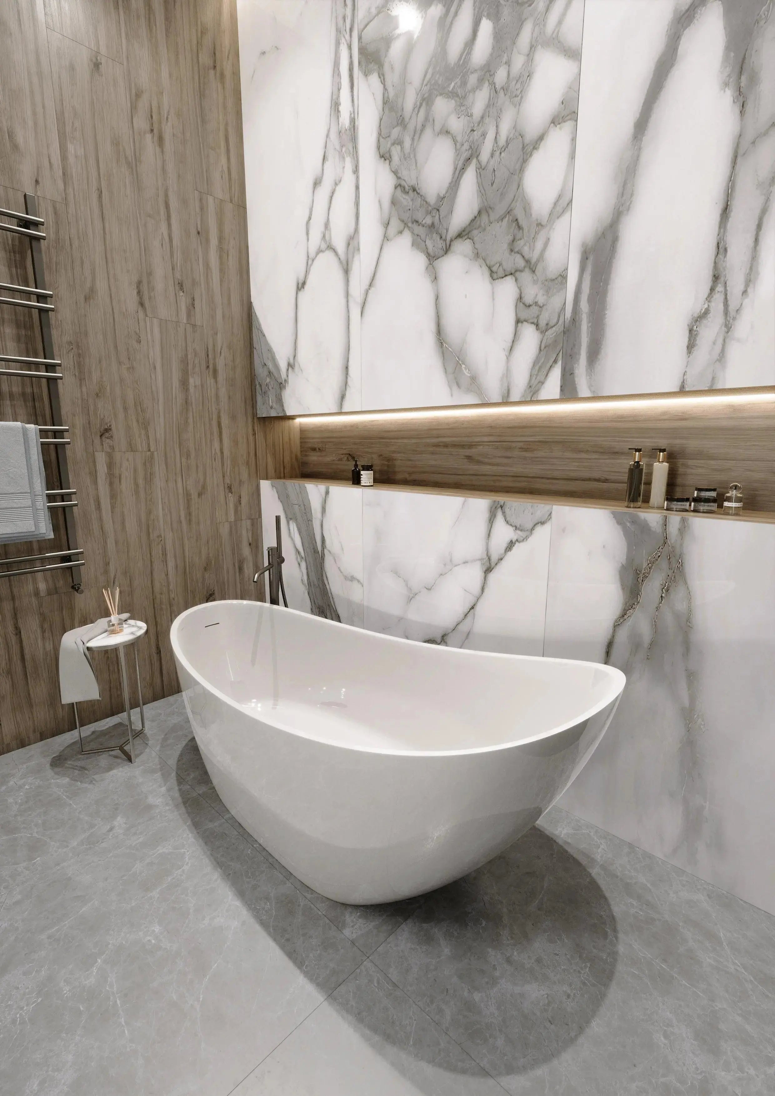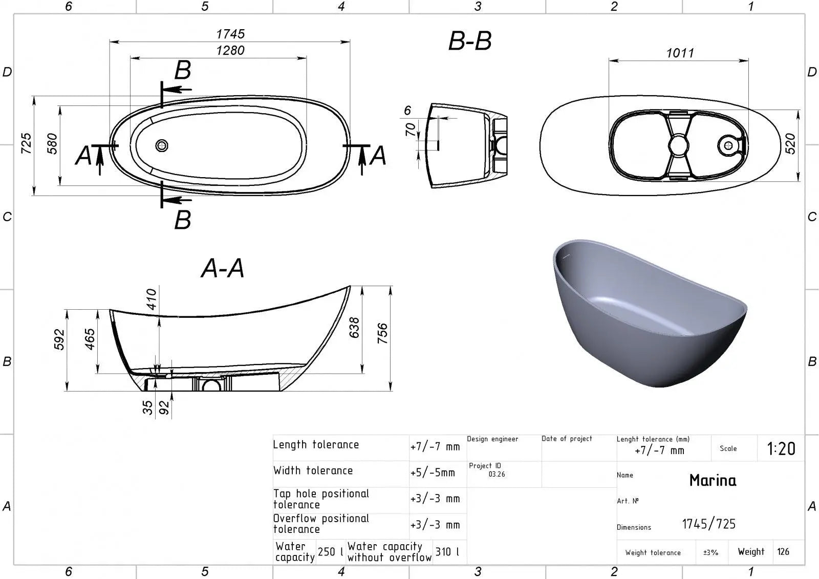 Cadă free-standing MARINA din compozit alb lucios obținut prin șlefuire.Compozitul de înaltă calitate conferă durabilitate si rezistență la șocuri mecanice.Cu...