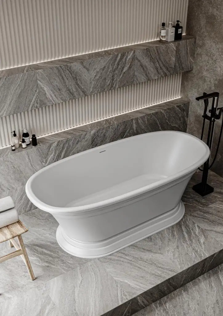 Creați o atmosferă de spa în propriul sanctuar de baie cu ajutorul căzii free-standing Anastasia. Fabricată dintr-un compozit de înaltă calitate și finisată într-un alb mat, această cadă impresionează prin designul său sofisticat și rafinat. Forma ovală adaugă un element de eleganță și stil, transformând baia ta într-un spațiu de relaxare și răsfăț.