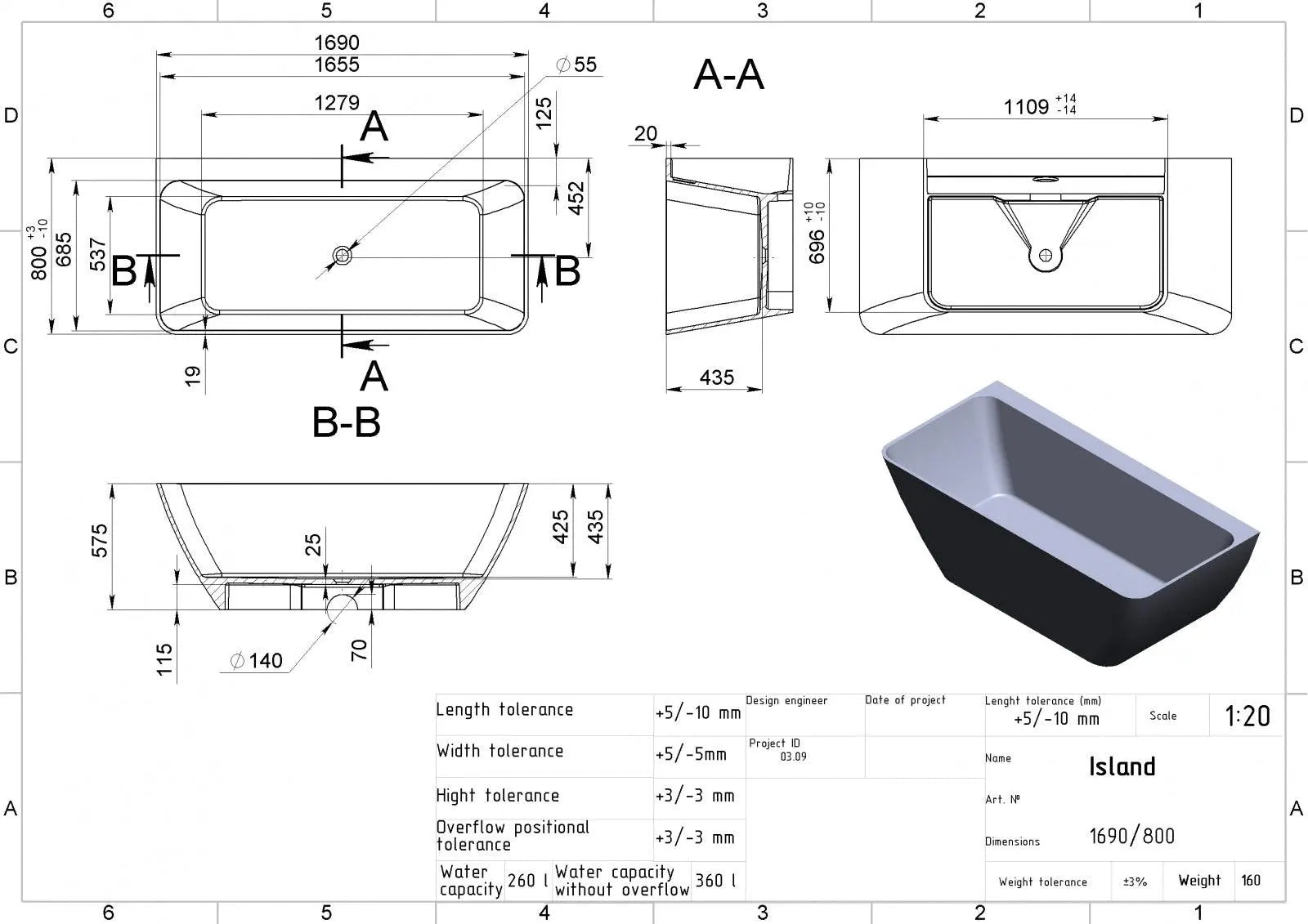 Cada Island free-standing din compozit negru mat obținut prin șlefuire.
