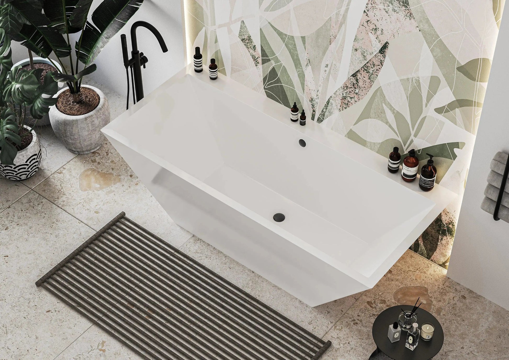 Cada Tenza free-standing cu finisaj alb mat obținut prin șlefuire.