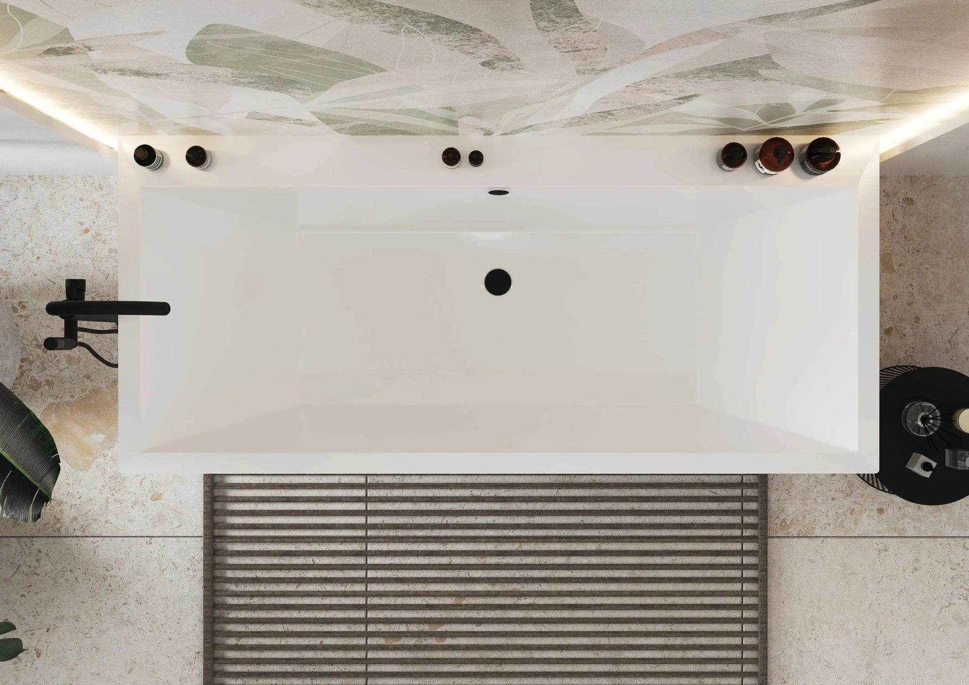 Designul plin, uniform, permite montarea acesteia lângă perete sau central.