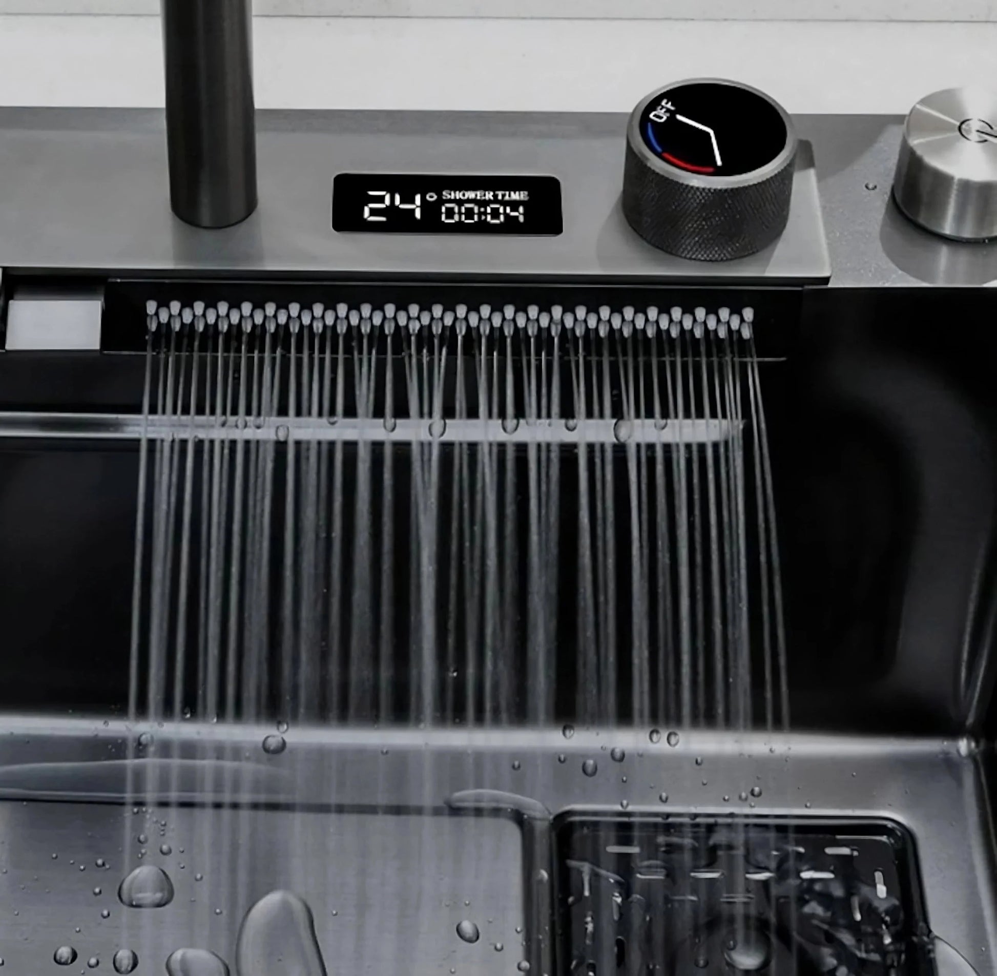 Chiuvetă Bucătărie Multifuncțională 7546HMSF – Gri Gun Metal, Cu Tocător, Dozator și Afișaj Digital