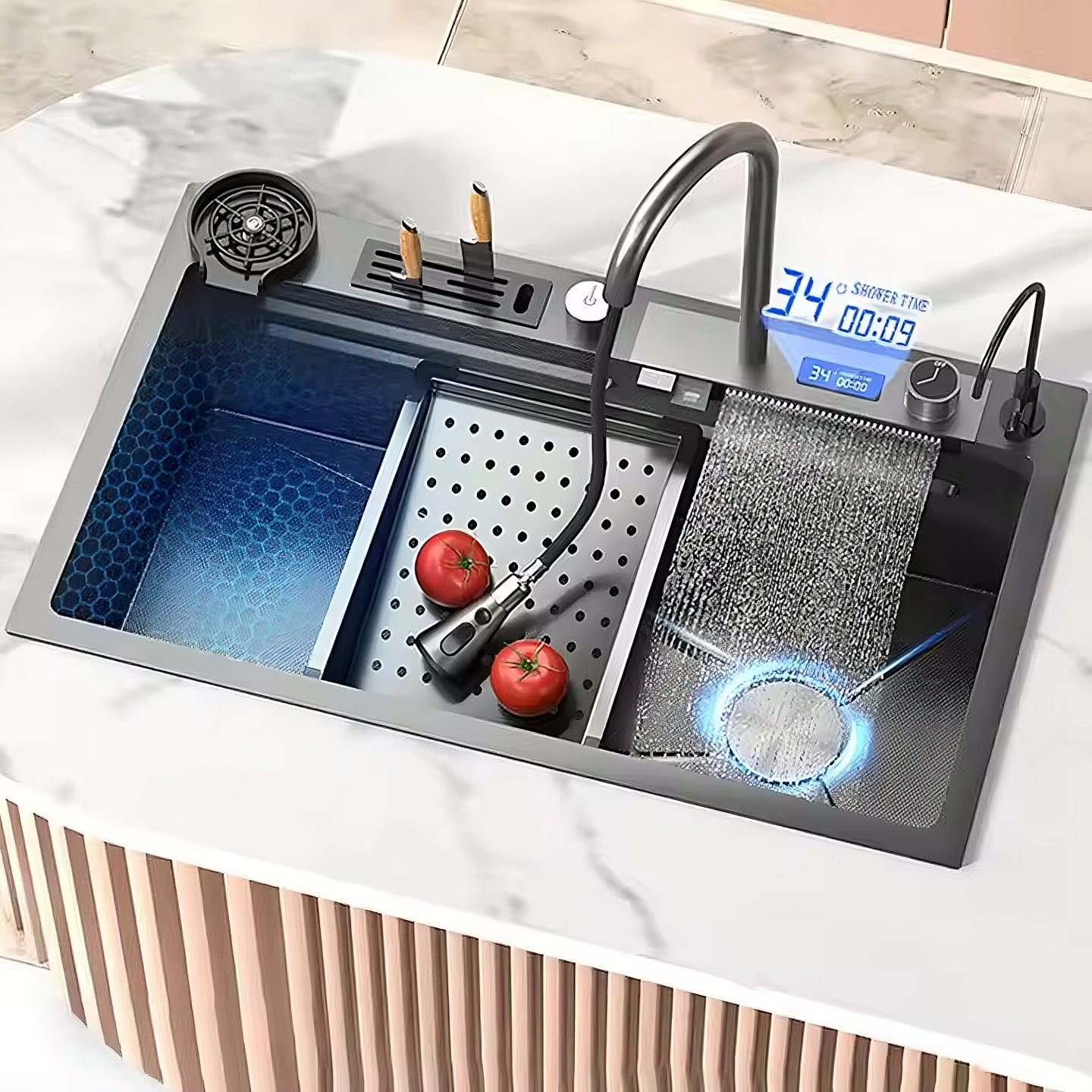 Chiuvetă Bucătărie Multifuncțională 7546HMSF – Finisaj Gun Metal | 75 × 46 cm