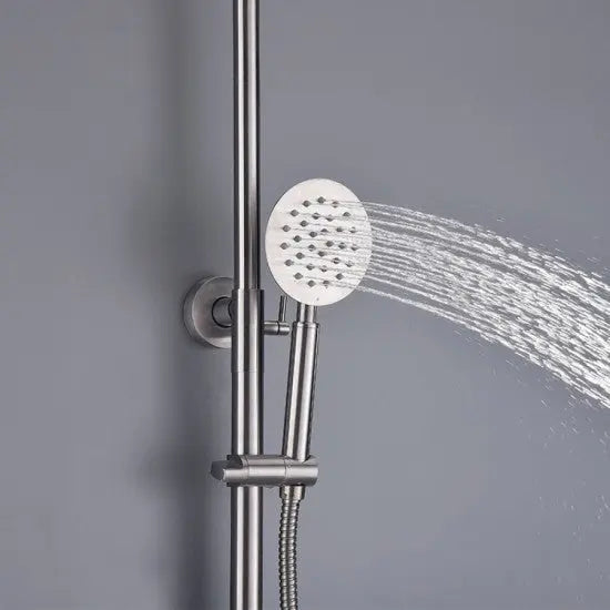 Această coloană de duș sau panou cu finisaj din alamă adaugă un aspect distinct și vintage în baia dvs. Cu un design de inspirație industrială și caracteristici avansate, acest produs reprezintă o alegere excelentă pentru a vă îmbunătăți experiența de duș.