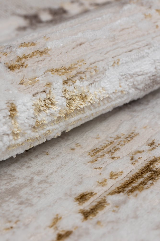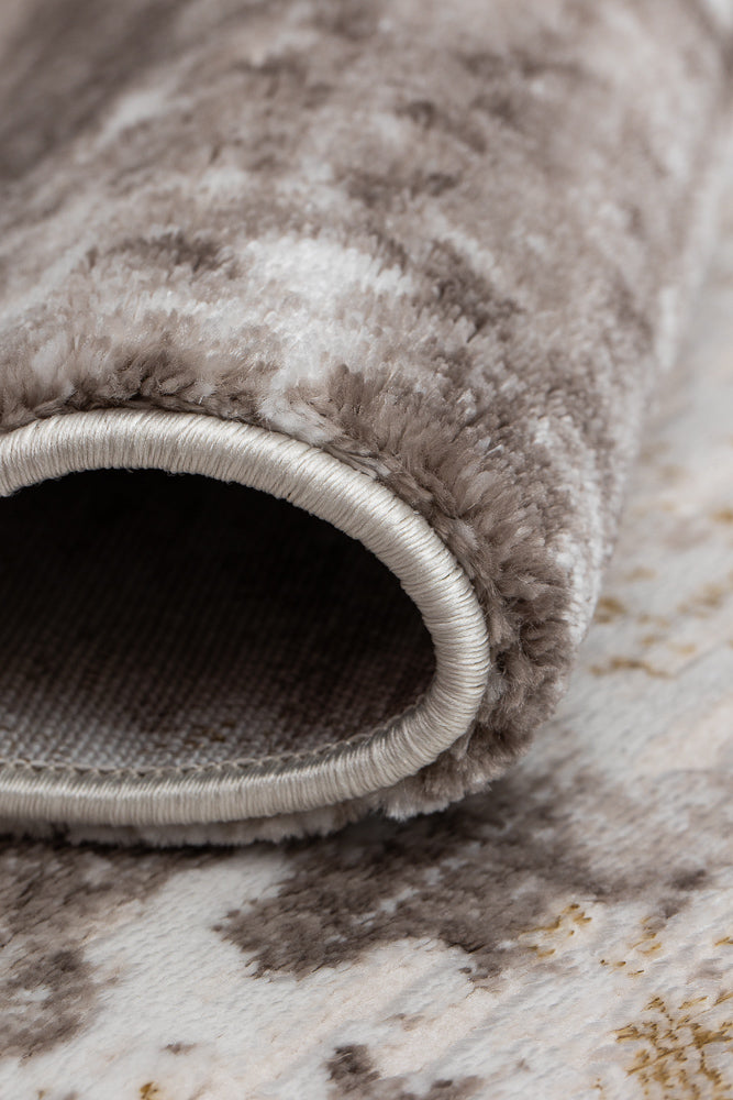 Cu un model abstract inspirat de efectul „washed” (uzat artistic), covorul San Marco Cream Brown adaugă profunzime și căldură oricărui spațiu. Nuanțele de crem, maro și accentele aurii discrete se combină armonios, transformând orice cameră într-un loc primitor și elegant. Este alegerea perfectă pentru un decor modern, boem sau minimalist.