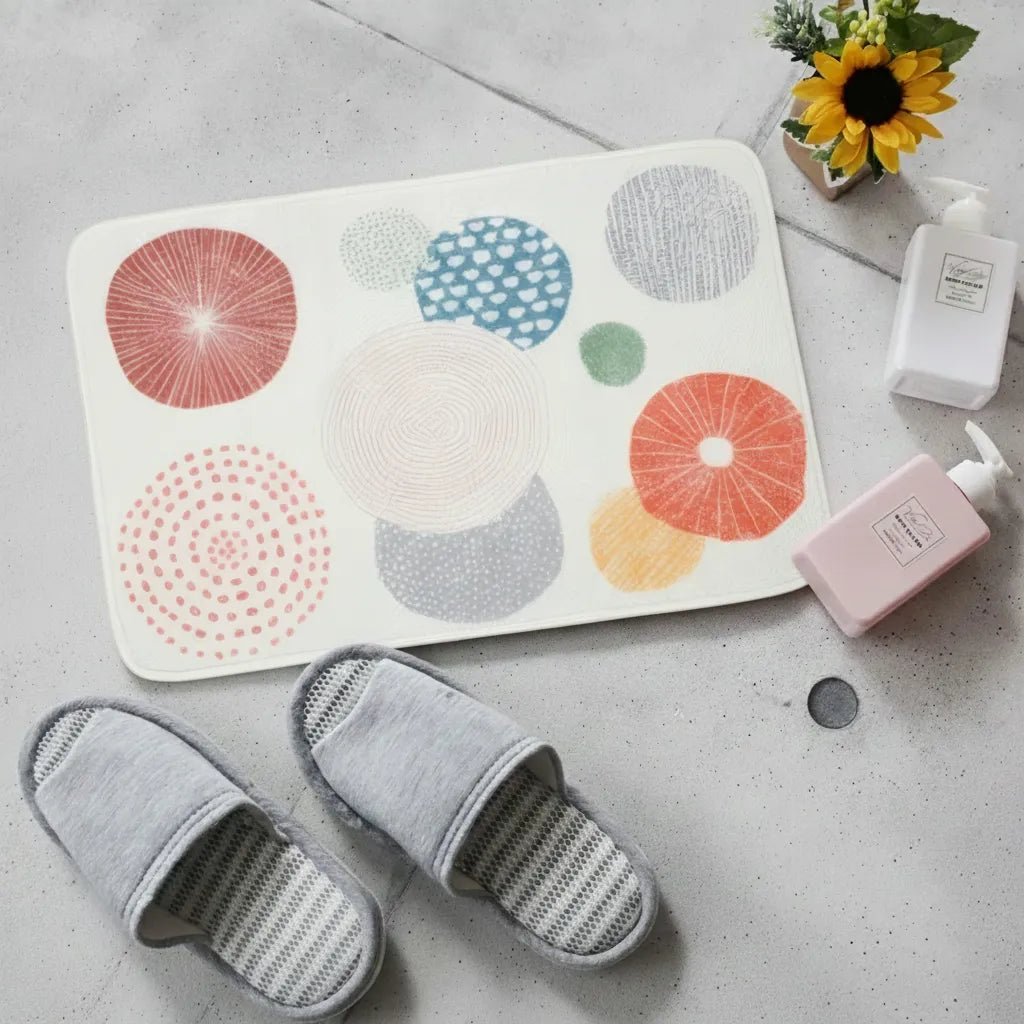 Covoraș baie absorbant, imitație cașmir, strat antiderapant, 40×60 cm, model geometric