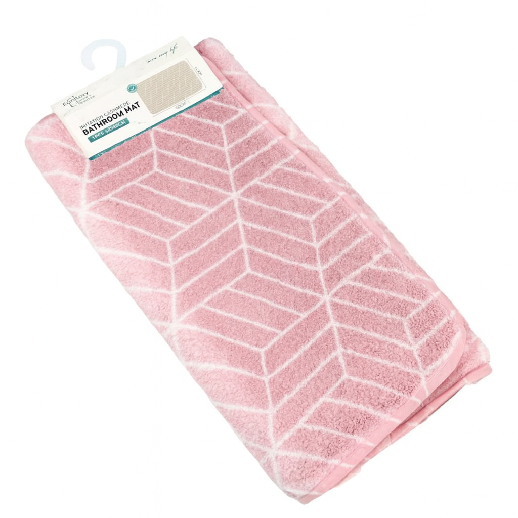 Covoras baie, SANITARY, imitatie casmir, 40x60 cm, roz cu model geometric, Dreptunghiular