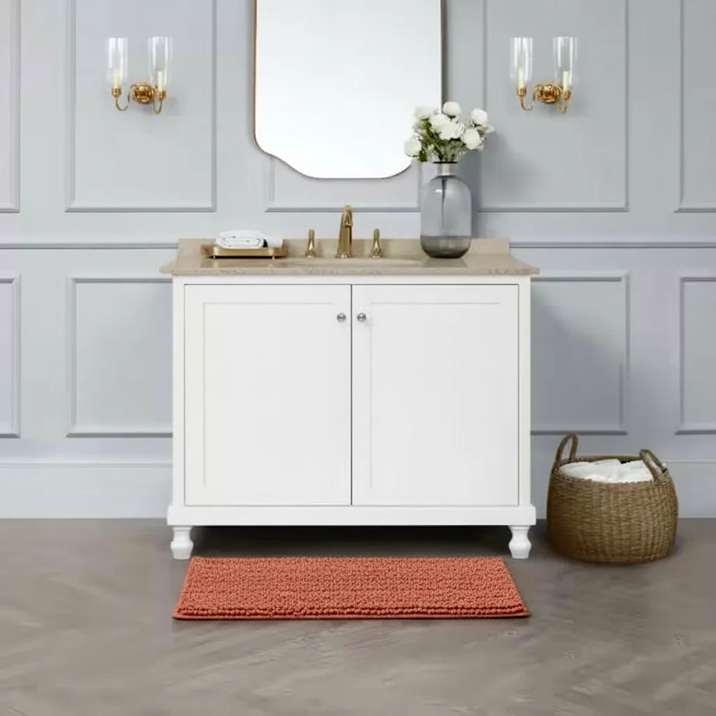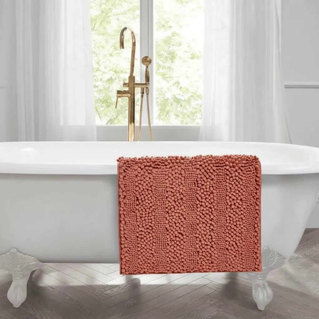 Covoraș baie din Chenille moale, strat antiderapant, 45×70 cm, Somon Cald