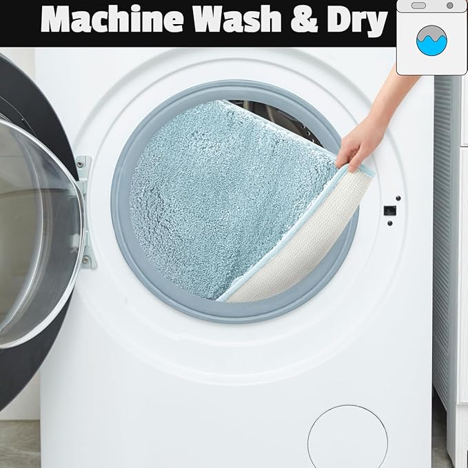 Covoraș baie din microfibră supersoft, antiderapant TRP, 45×75 cm, Albastru deschis