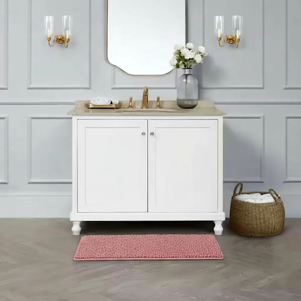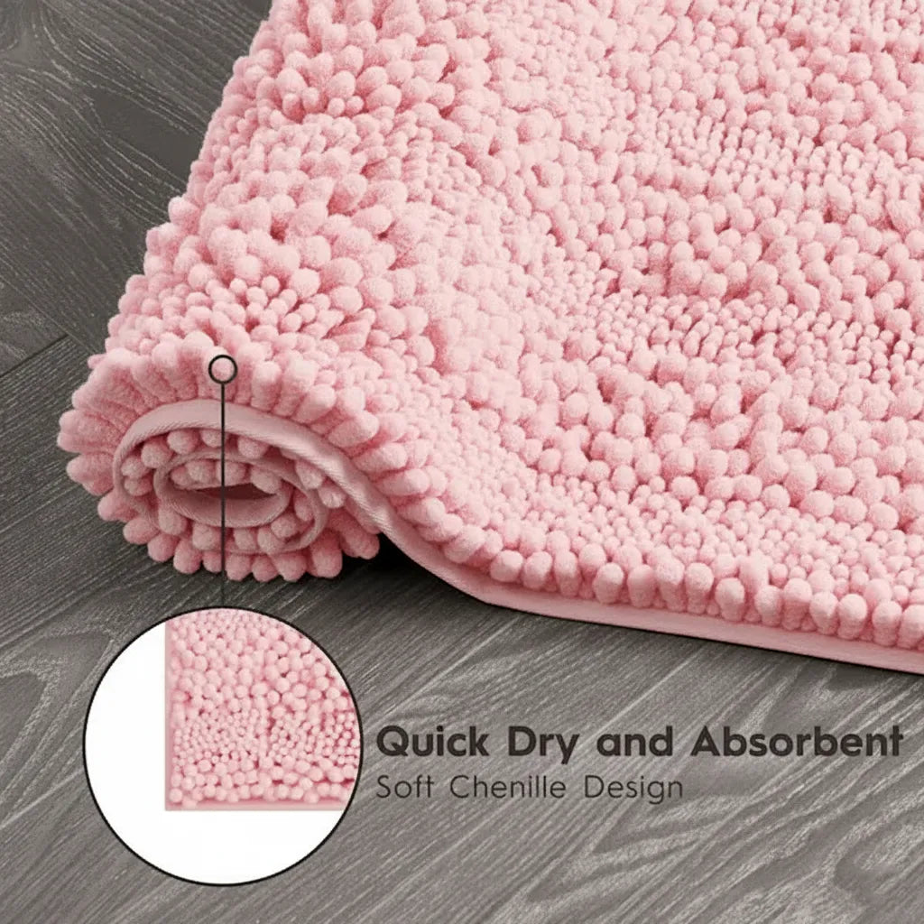 Covoraș baie din Chenille moale, strat antiderapant, 45×70 cm, Roz pudră