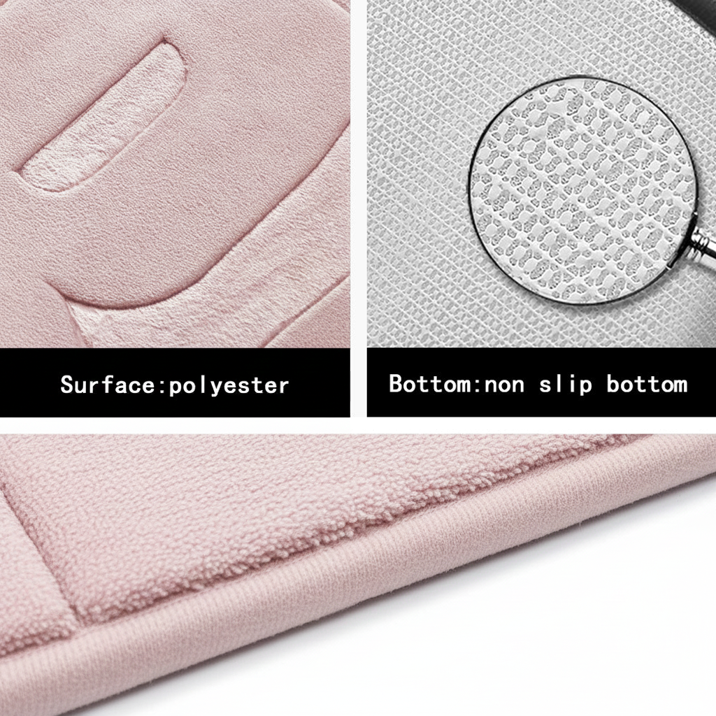 Covoraș baie cu inscripție BATH, antiderapant TRP, 45×75 cm, Roz