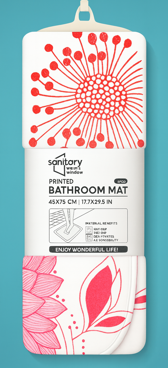 Covoraș de baie “Sanitary” 45×75 cm, din microfibră moale, alb cu model floral. Design dreptunghiular elegant, ideal pentru a aduce...