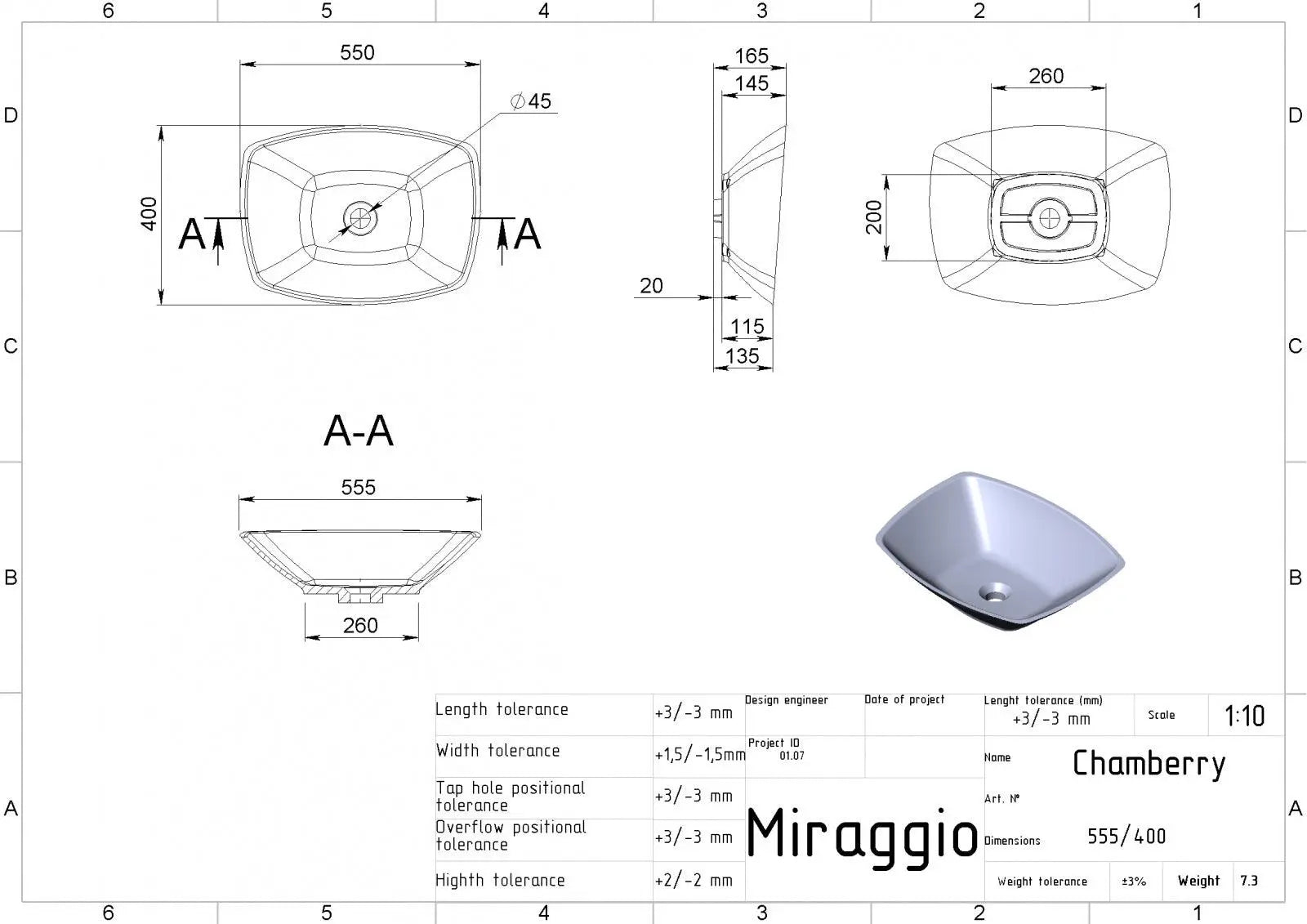 Lavoar Chamberry fabricat din compozit de cea mai bună calitate, cu finisaj alb strălucitor. Tehnologia MIRAMARBLE Componenta principală pentru producția chiuvetelor,...
