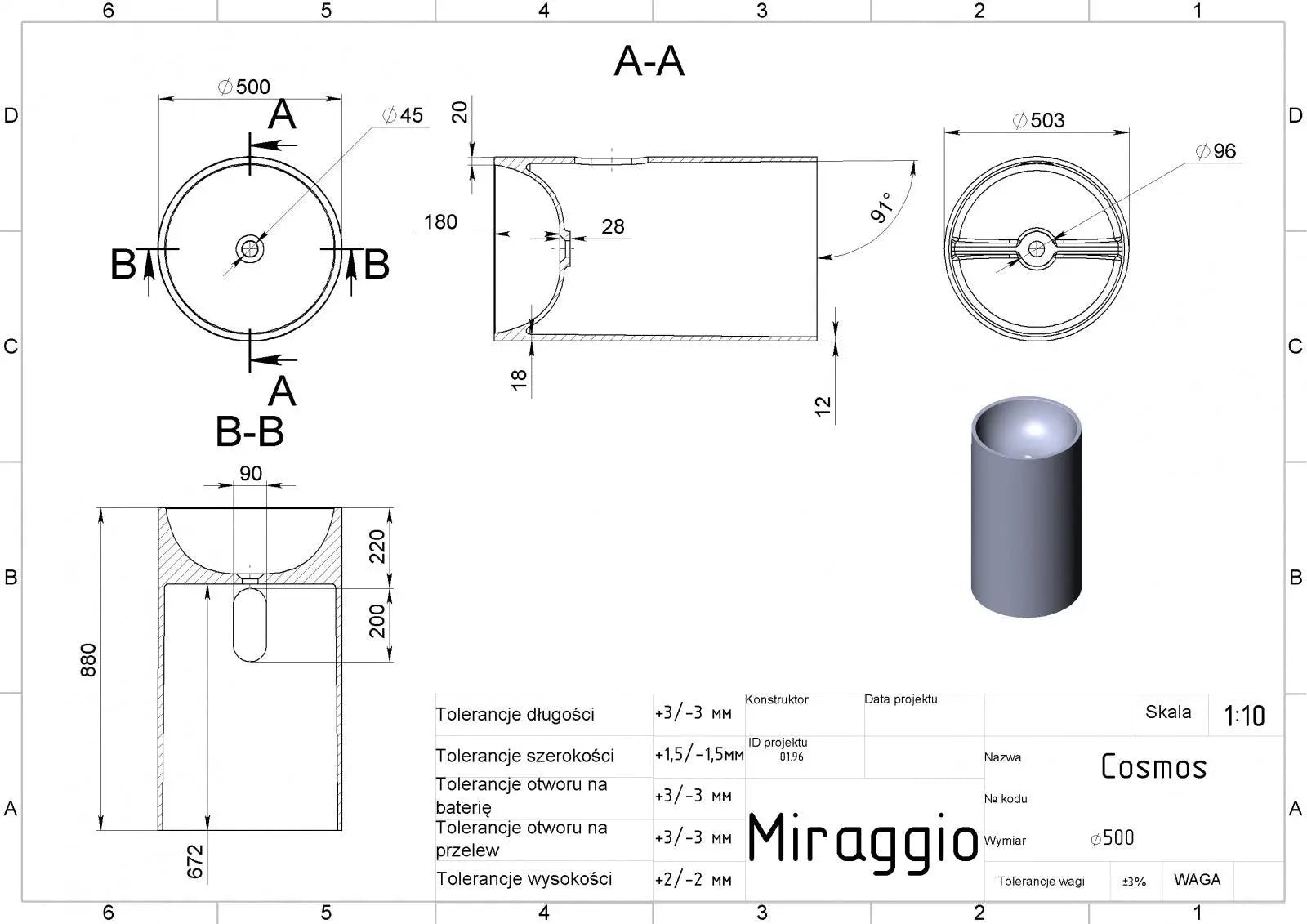 Lavoar Cosmos, fabricat din compozit de cea mai bună calitate, cu finisaj alb strălucitor.