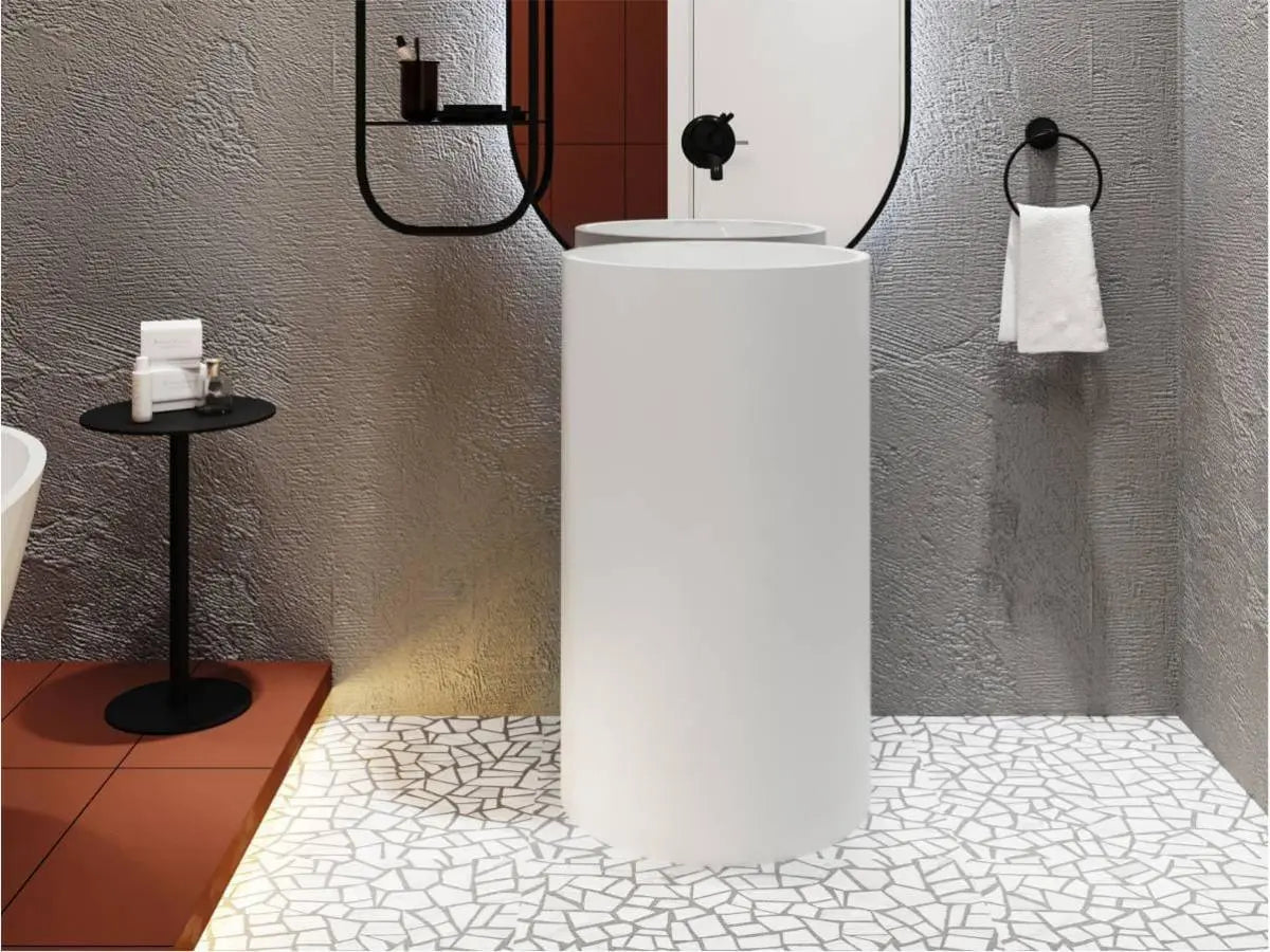 Componenta principală pentru producția chiuvetelor, căzilor și cădițelor de duș este marmura macinată 80% amestecată cu rășină poliesterică 20%. Proprietățile chimice și fizice ale acestui amestec permit o producție personalizată de calitate superioară. Suprafața lavoarelor, căzilor și cădițelor de duș este acoperită cu Gelcoat ISO NPG, ceea ce le face antibacteriene, igienice și ecologice.
