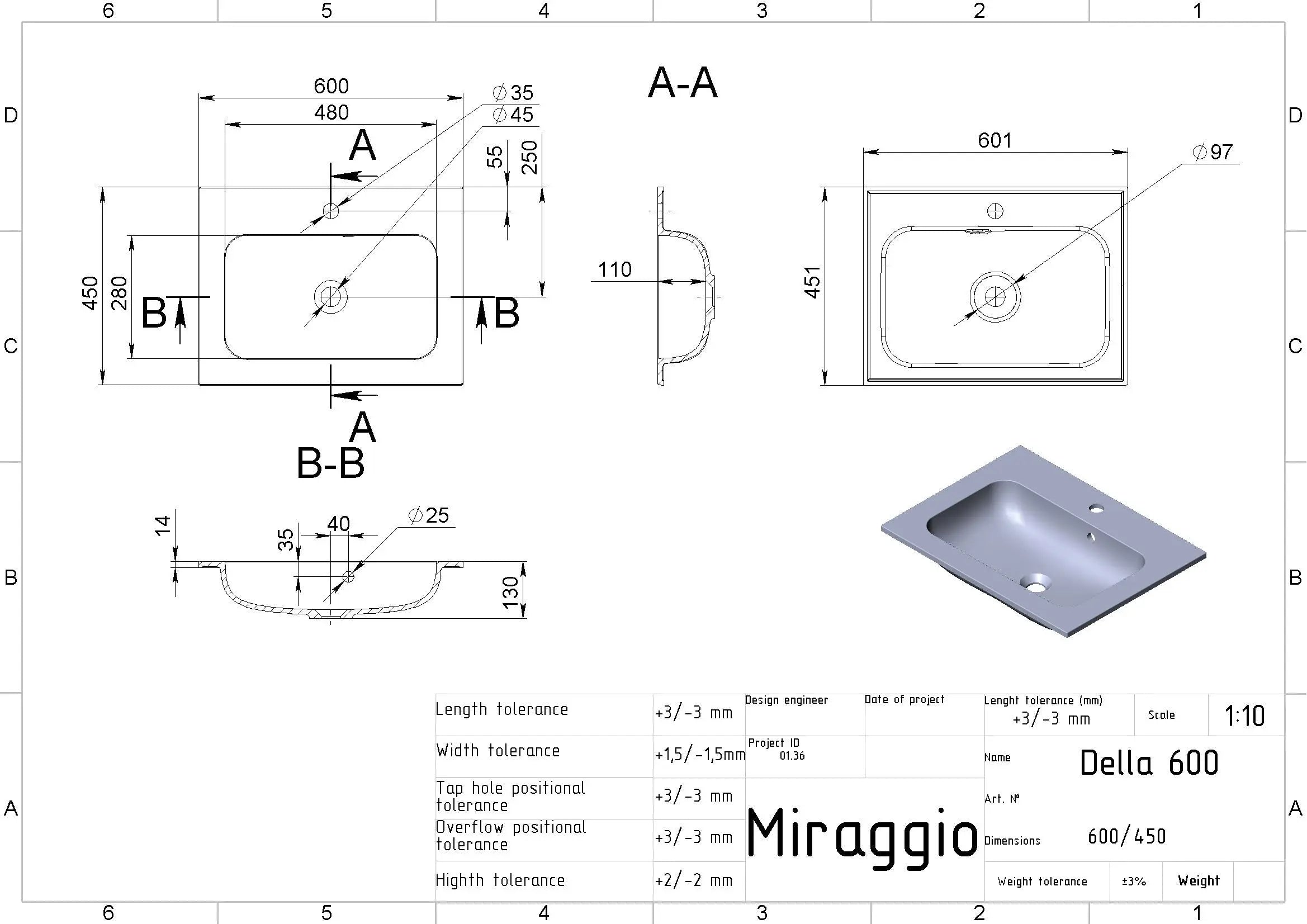 Lavoar Della 600, fabricat din compozit de cea mai bună calitate, cu finisaj alb strălucitor. Tehnologia MIRAMARBLE Componenta principală pentru producția chiuvetelor,...