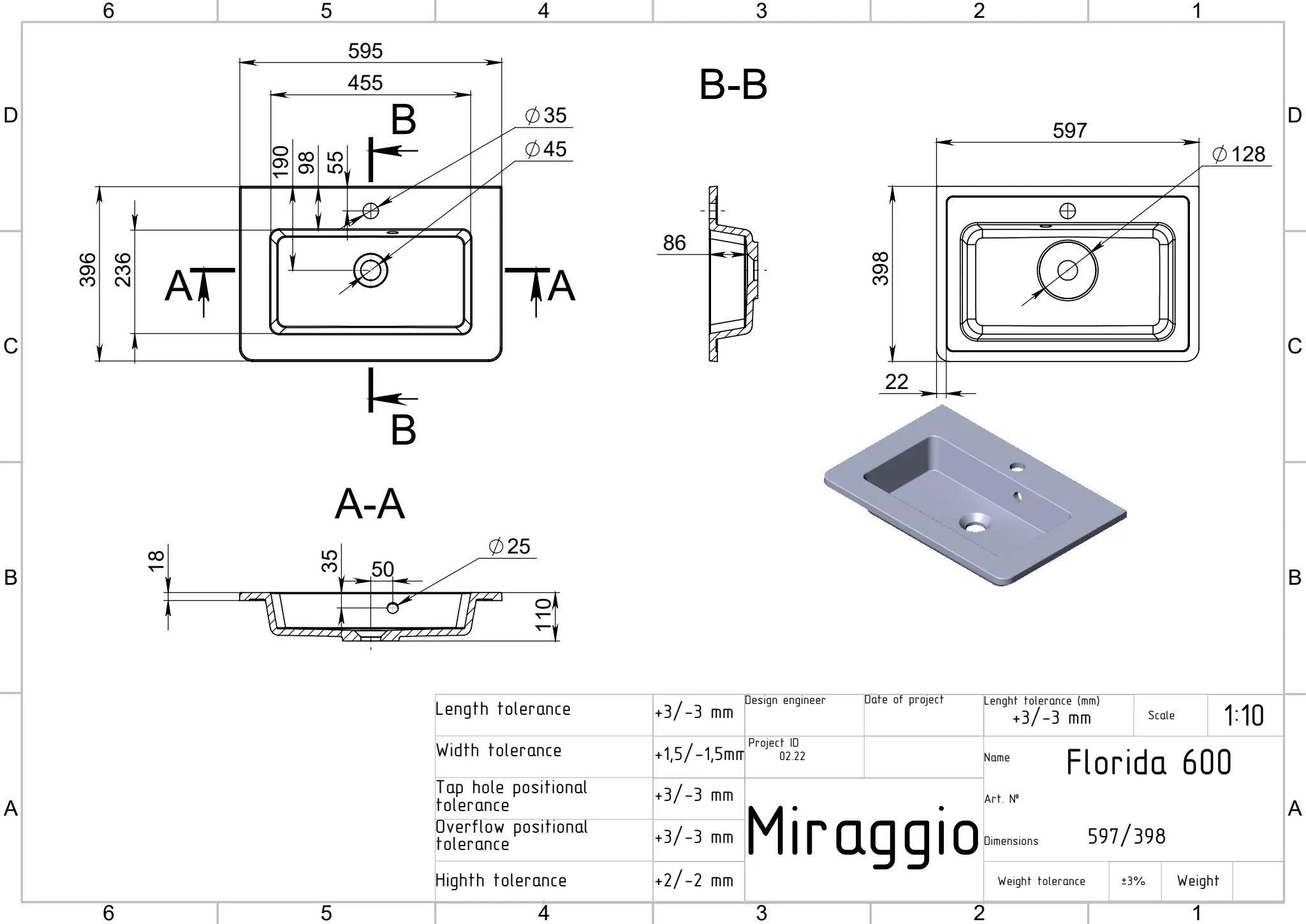 Lavoar Florida 600, fabricat din compozit de cea mai bună calitate, cu finisaj alb strălucitor. Tehnologia MIRAMARBLE Componenta principală pentru producția chiuvetelor,...