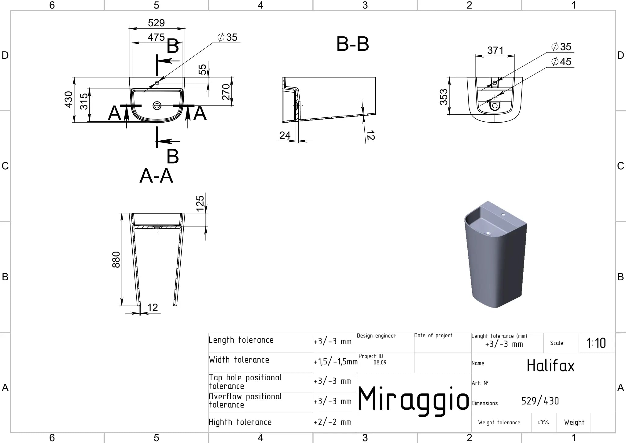 Lavoar freestanding Halifax, Miraggio