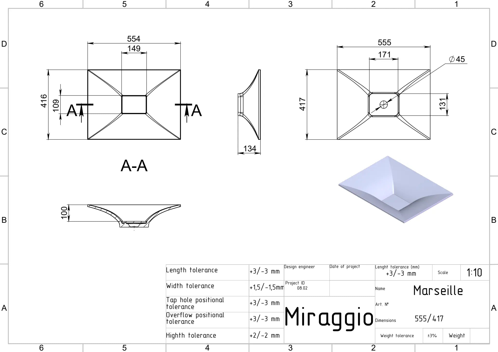 Lavoar Marseille, fabricat din compozit de cea mai bună calitate, cu finisaj alb strălucitor. Tehnologia MIRAMARBLE Componenta principală pentru producția chiuvetelor, căzilor...