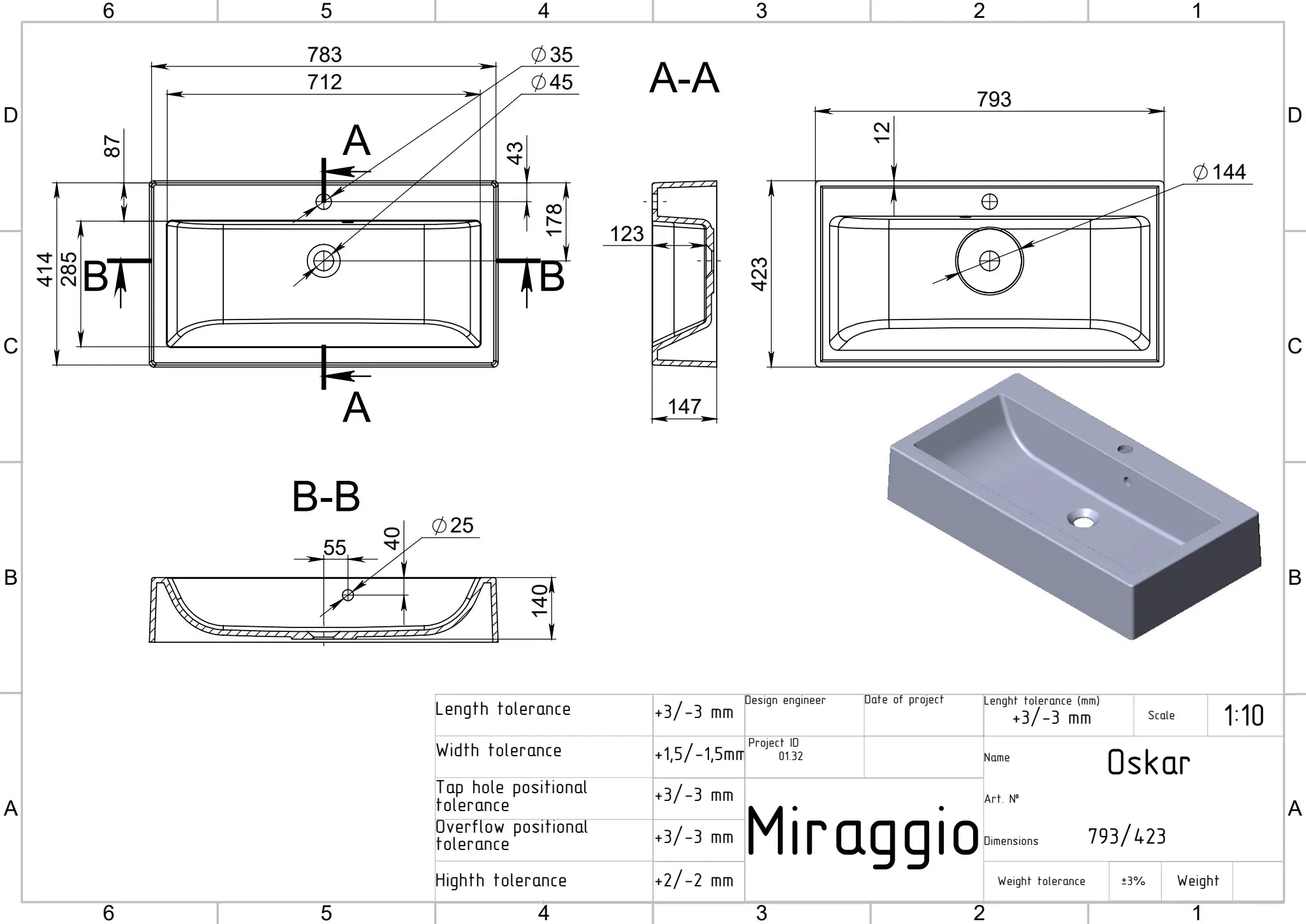 Lavoar Oskar, fabricat din compozit de cea mai bună calitate, cu finisaj alb strălucitor. Tehnologia MIRAMARBLE Componenta principală pentru producția chiuvetelor, căzilor...