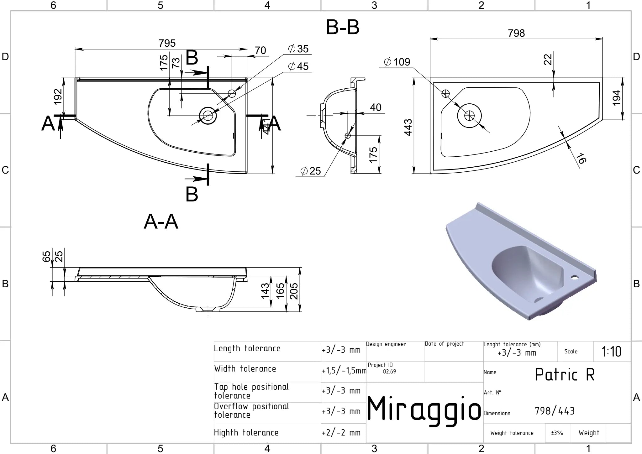 Lavoar Patric R, fabricat din compozit de cea mai bună calitate, cu finisaj alb strălucitor. Tehnologia MIRAMARBLE Componenta principală pentru producția chiuvetelor,...