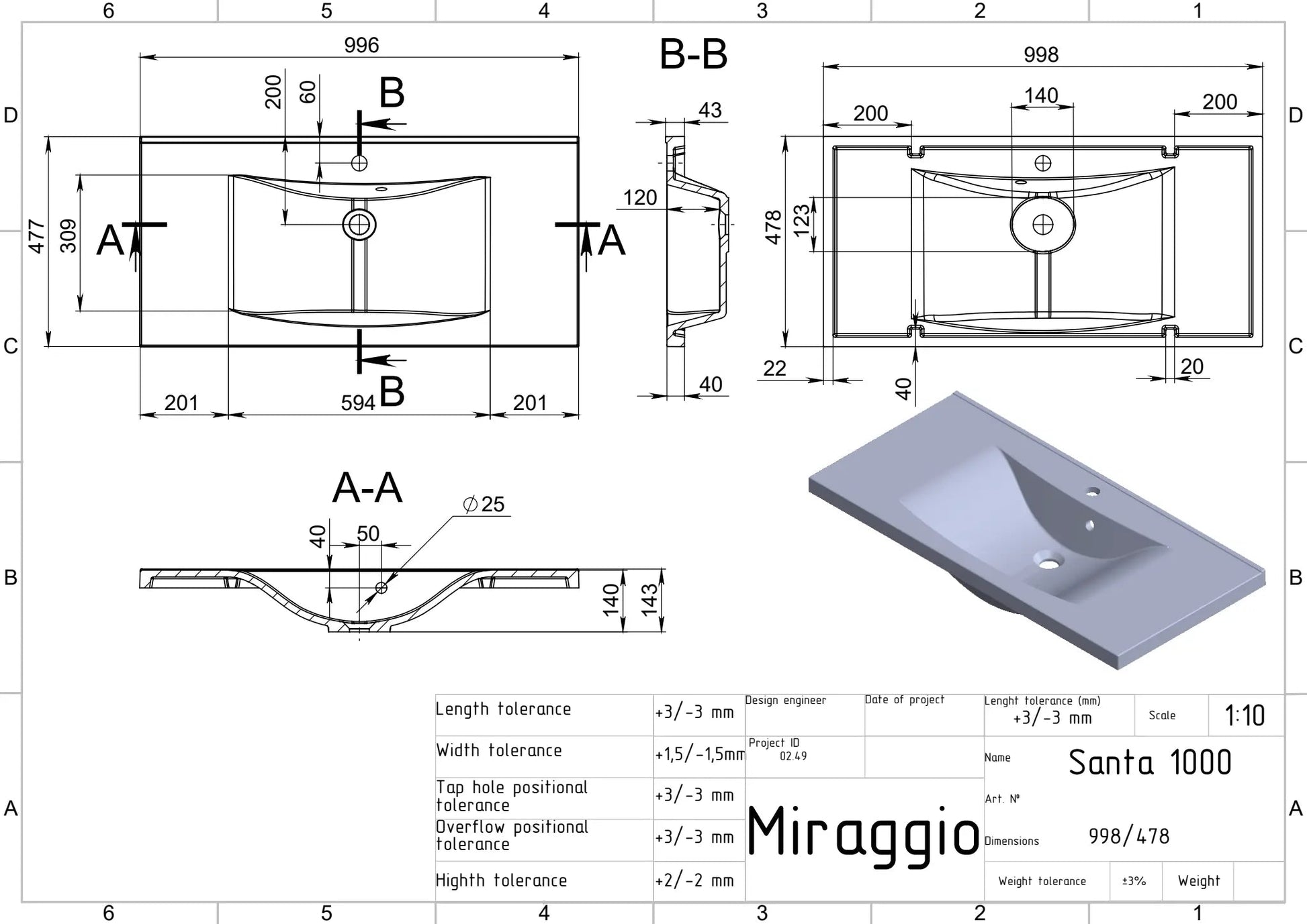 Lavoar Santa 1000, fabricat din compozit de cea mai bună calitate, cu finisaj alb strălucitor.