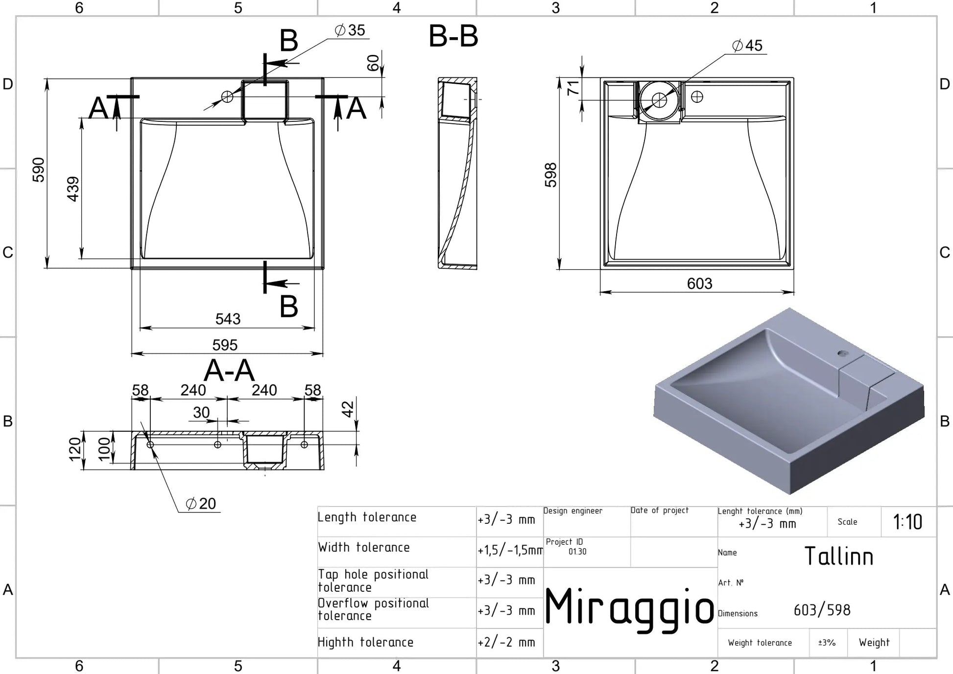 Lavoar Tallinn, fabricat din compozit de cea mai bună calitate, cu finisaj alb strălucitor.