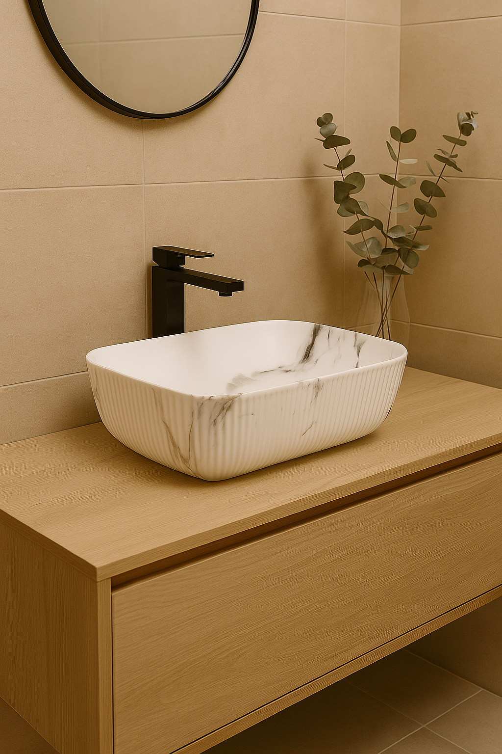 Lavoar Zen - ceramic alb cu efect marmorat A426L