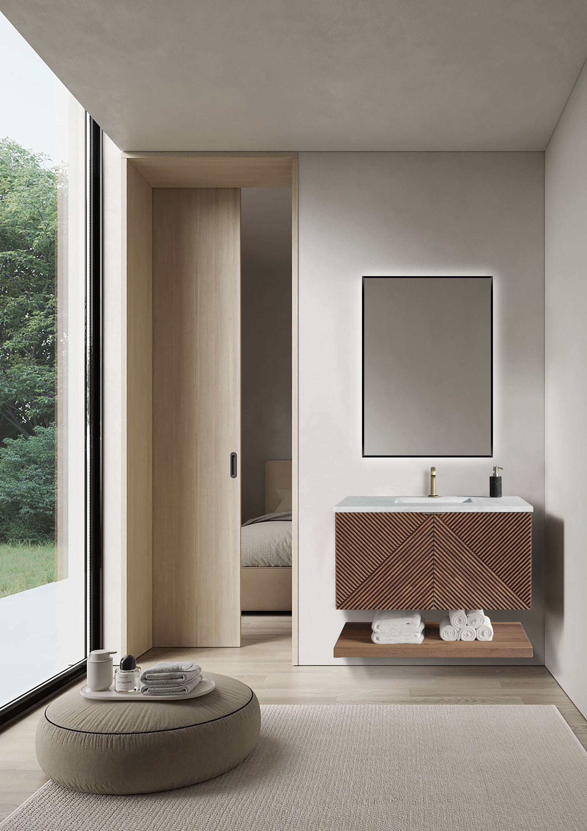 Mobilier Baie din Lemn cu Design Geometric & Oglindă LED